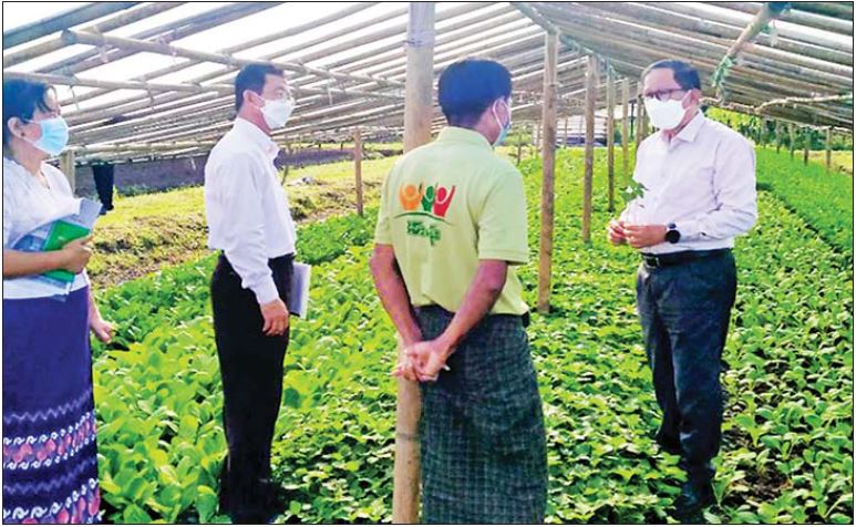 ထိုမှတဆင့် ပြည်ထောင်စုဝန်ကြီးနှင့်အဖွဲ့သည် မှော်ဘီမြို့ ညောင်နှစ်ပင်စိုက်ကွင်းရှိ စိမ်းလန်းသမဝါယမအသင်း ၏ ဓါတုကင်းလွတ် ဟင်းသီးဟင်းရွက် စိုက်ပျိုး ထုတ်လုပ်မှု ဧရိယာ အတွင်း သမဝါယမအသင်းဝင် တောင်သူ အိမ်ထောင်စု (၂၀၀) က ဂျီအေပီ အသိအမှတ်ပြု လက်မှတ်ရ ဟင်းသီး ဟင်းရွက် စိုက်ပျိုးထုတ်လုပ်နေမှုများကို ကြည့်ရှုစစ်ဆေး အားပေးရာ တာဝန်ရှိသူများက ရှင်းလင်း တင်ပြကြသည်။