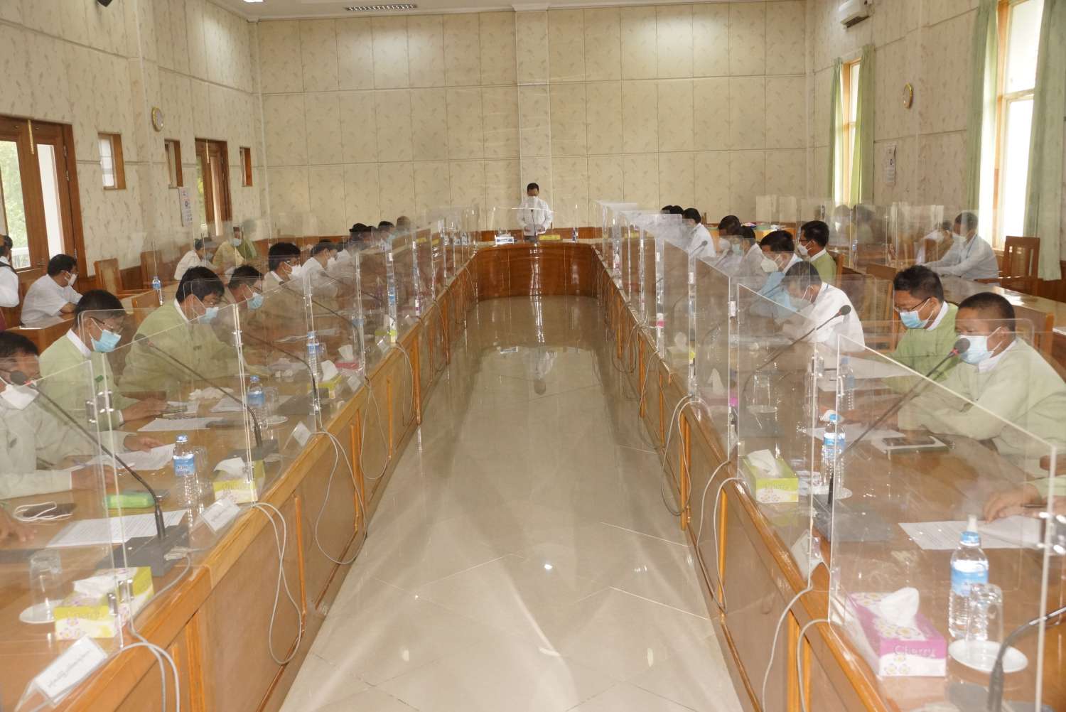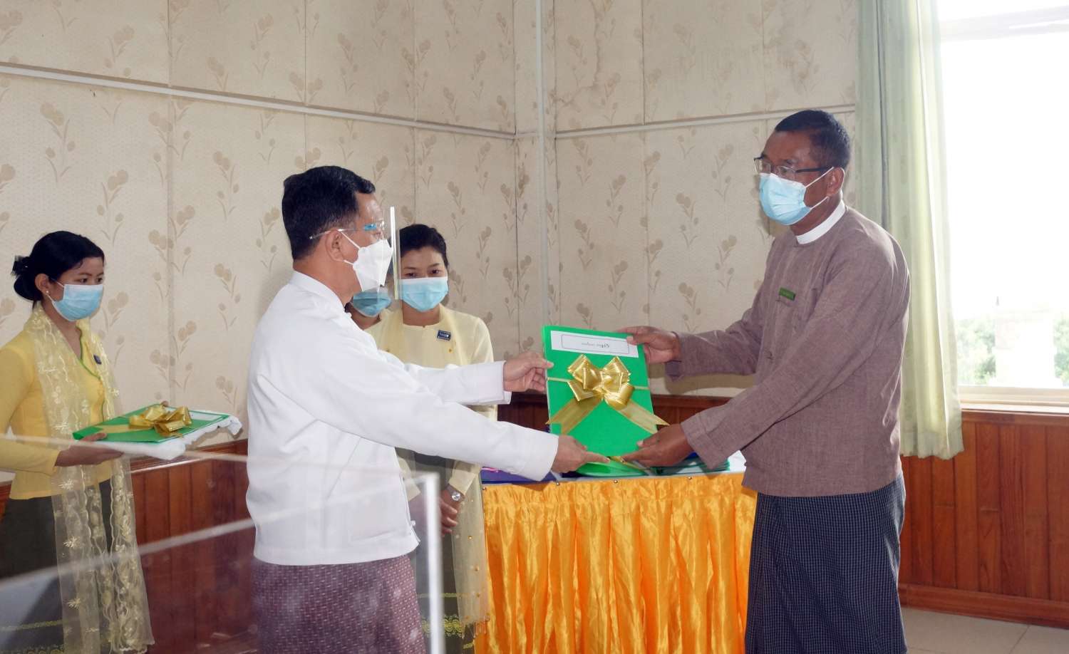 ထို့နောက် နေပြည်တော်ကောင်စီဝင် ဗိုလ်မှူးကြီးမင်းနောင်က စက်မှုကဏ္ဍကြီး စီမံကိန်းရည် မှန်းချက်များကို သက်ဆိုင်ရာဌာန များကိုယ်စား နေပြည်တော် စက်မှုကြီးကြပ်နှင့် စစ်ဆေးရေး ဦးစီးဌာနသို့လည်းကောင်း၊ ဒေသဖွံ့ဖြိုးရေးလုပ်ငန်းများကို နေပြည်တော် လမ်းဦးစီးဌာနသို့လည်းကောင်း၊ ဒေသဖွံ့ဖြိုးရေး လုပ်ငန်းများကို နေပြည်တော် ကျေးလက်လမ်းဦးစီးဌာနသို့ လည်းကောင်း၊ နေပြည်တော်ကောင်စီဝင် ဦးဇေယျာလင်းက ဝန်ဆောင်မှုကဏ္ဍကြီး စီမံကိန်း ရည်မှန်းချက်များကို သက်ဆိုင်ရာဌာနများကိုယ်စား နေပြည်တော် ဟိုတယ်နှင့် ခရီးသွားလာရေး ဦးစီးဌာနသို့လည်းကောင်း၊ ဒေသဖွံ့ဖြိုးရေး လုပ်ငန်းများကို နေပြည်တော် ကျေးလက်ဒေသ ဖွံ့ဖြိုးရေးဦးစီးဌာနသို့လည်းကောင်း၊ ဒေသဖွံ့ဖြိုးရေး လုပ်ငန်းများကို နေပြည်တော် ဆည်မြောင်းနှင့် ရေအသုံးချမှုစီမံခန့်ခွဲရေးဦးစီးဌာန (ထိန်းသိမ်းရေး) သို့လည်းကောင်း၊ နေပြည်တော်ကောင်စီဝင် ဦးမြင့်စိုးက ဒေသဖွံ့ဖြိုးရေးလုပ်ငန်းများကို နေပြည်တော် လျှပ်စစ် ဓါတ်အားဖြန့်ဖြူးရေး လုပ်ငန်းသို့လည်းကောင်း၊ စီမံကိန်း ရည်မှန်းချက်များကို ဥတ္တရခရိုင် စီမံအုပ်ချုပ်ရေးအဖွဲ့သို့လည်းကောင်း၊ စီမံကိန်းရည်မှန်းချက်များကို ဒက္ခိဏခရိုင် စီမံ အုပ်ချုပ်ရေး အဖွဲ့သို့လည်းကောင်း၊ နေပြည်တော်ကောင်စီဝင် ရဲမှူးကြီး ကိုကိုလွင်က ဒေသ ဖွံ့ဖြိုးရေးလုပ်ငန်းများကို ဥတ္တရခရိုင်အတွင်းရှိ မြို့နယ်စီမံအုပ်ချုပ်ရေး အဖွဲ့(၄)ဖွဲ့သို့ လည်းကောင်း၊ နေပြည်တော်ကောင်စီဝင် ဦးကျော်သိန်းဆိုင်က ဒေသဖွံ့ဖြိုးရေး လုပ်ငန်းများကို ဒက္ခိဏခရိုင်အတွင်းရှိ မြို့နယ်စီမံအုပ်ချုပ်ရေး အဖွဲ့(၄)ဖွဲ့သို့လည်းကောင်း အပ်နှံတာဝန်ပေးအပ်ရာ တာဝန် ရှိသူများက လက်ခံရယူခဲ့ကြကြောင်း သိရသည်။