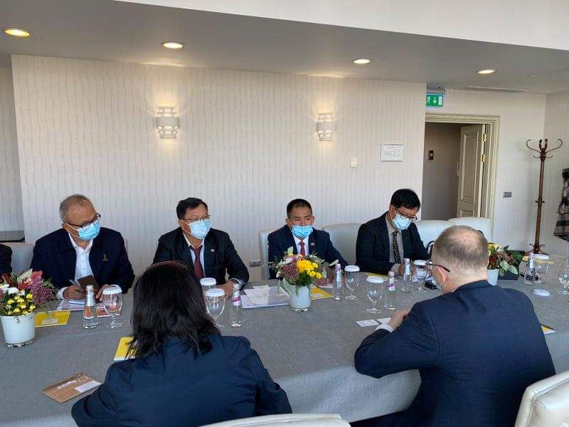 ရုရှားဖက်ဒရေးရှင်းနိုင်ငံ မော်စကိုမြို့၌ ကျင်းပပြုလုပ်သော Russian Energy Week International Forum (REW 2021) သို့ တက်ရောက်ရန် မော်စကိုမြို့၌ ရောက်ရှိနေသည့် လျှပ်စစ်နှင့်စွမ်းအင်ဝန်ကြီးဌာန ပြည်ထောင်စုဝန်ကြီး ဦးအောင်သန်းဦး နှင့်အဖွဲ့သည် အောက်တိုဘာ ၁၁ ရက်တွင် ORGRES ကုမ္ပဏီနှင့် ရုရှားကုန်သည်ကြီးများအသင်းတို့မှ တာဝန်ရှိသူများနှင့် တွေ့ဆုံ၍ နှစ်နိုင်ငံရင်းနှီးမြှုပ်နှံမှုဆိုင်ရာ ကိစ္စရပ်များကို ဆွေးနွေးခဲ့သည်။