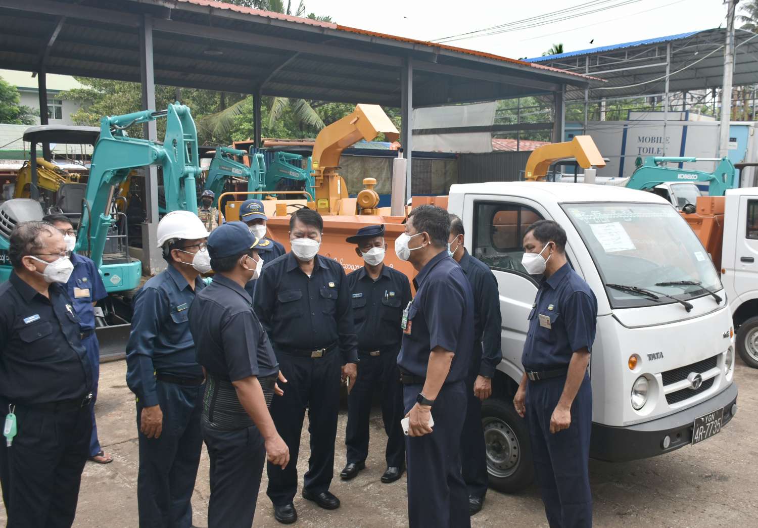ထို့နောက် မြို့တော်ဝန်နှင့် တာဝန်ရှိသူများသည် အလုံမြို့နယ်၊ မြို့ပြပတ်ဝန်းကျင် ထိန်းသိမ်းရေးနှင့် သန့်ရှင်းရေးဌာန၊ အမှတ် (၂) မော်တော်ယာဉ်ဝင်းအတွင်း သစ်ရွက်၊ သစ်ကိုင်းကြီးများ ခုတ်၊ ဖြတ်၊ ခွဲစက်မှထွက်ရှိလာသည့် အပိုင်းအစများကို အမှုန့်ပြန်လည် ပြုလုပ်ပြီး စိုထိုင်းဆ Moisture ၁၅ ရာခိုင်နှုန်း အောက်ရောက်သည်အထိ အခြောက်ခံပြီး လောင်စာတောင့်ထုတ်လုပ်နေမှုနှင့် Wood Chipping (Vermeer 1250 Chipper) (သစ်ပင်၊ သစ်ကိုင်းကြီးများ ခုတ်၊ ဖြတ်၊ ကြိတ်ခွဲစက်) နှစ်လုံး ပြန်လည်ပြုပြင်ပြီး လက်တွေ့ ပြန်လည် ခုတ်၊ ဖြတ်၊ ခွဲနေမှုများကို ကြည့်ရှုစစ်ဆေးပြီး တာဝန်ရှိသူများ၏ ရှင်းလင်းတင်ပြကြသည့်အပေါ် မြို့တော်ဝန်က လိုအပ်သည်များ ဖြည့်ဆည်း ဆောင်ရွက်ပေးသည်။