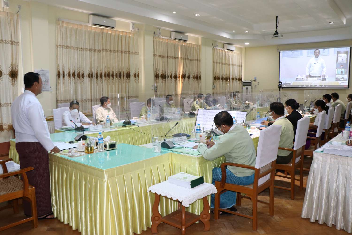 ထို့နောက် ကျေးလက်ဒေသ ဖွံ့ဖြိုးတိုးတက်ရေးဦးစီးဌာန ညွှန်ကြားရေးမှူးချုပ် ဦးသိန်းလွင် က ၂၀၂၀-၂၁ ဘဏ္ဍာရေးနှစ်တွင် ကျေးလက်ဒေသဖွံ့ဖြိုး တိုးတက်ရေးဦးစီး ဌာနအနေဖြင့် (ကျေးလက် ရေရရှိရေး လုပ်ငန်း) ၃,၂၆၁ ခု၊ ကျေးလက်မီးလင်းရေး ကျေးရွာ (၁၀၁) ရွာ၊ ကျေးလက်ကုန်ထုတ် လမ်း (၈၂၇)မိုင်၊ ကုန်ထုတ်တံတား (၁,၁၉၇) စင်း၊ ကျေးလက်အိမ်ရာ(၅၈၅)လုံး၊ လူထုဗဟိုပြုစီမံကိန်း (၁၆)မြို့နယ်၊ မြစိမ်းရောင် ကျေးရွာစီမံကိန်း ထပ်တိုးကျေးရွာ(၄၀၀) အပါအဝင်(၁၂,၀၈၄)ရွာနှင့် ကျေးရွာဖွံ့ဖြိုးရေး လုပ်ငန်း စီမံကိန်း (၃,၅၀၃)ရွာတို့ကို အကောင်အထည်ဖော် ဆောင်ရွက်နိုင်ခဲ့ပါကြောင်း၊ ကျေးလက်နေ ပြည်သူများ၏ လူနေမှုဘဝ မြင့်မားတိုးတက်ရေးအတွက် ကျေးရွာများ သောက်သုံးရေရရှိရေး၊ မီးရရှိရေး၊ ကျေးရွာကုန်ထုတ်လမ်းများ ဖောက်လုပ်ရေးတို့ကို ဦးစားပေး ဆောင်ရွက်ပေးလျက်ရှိပါကြောင်းနှင့် ဆက်လက် အကောင်အထည် ဖော်ဆောင်ရွက်မည့် လုပ်ငန်းစဉ်များကို ရှင်းလင်းတင်ပြသည်။