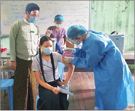 တိုင်းဒေသကြီးနှင့် ပြည်နယ်အသီးသီးတို့၌ သံဃာတော်များ၊ သာသနာနွယ်ဝင်သီလရှင်များ၊ ဘာသာရေးခေါင်းဆောင်များအပါအဝင် လူမျိုးမရွေး ဘာသာမရွေး အသက်(၅၅)နှစ်အထက် ဒေသခံပြည်သူများ၊ အကျဉ်းသား၊ အကျဉ်းသူများ၊ မသန်စွမ်းသူများ၊ တိုင်းရင်းသားလက်နက်ကိုင်အဖွဲ့များ၊ နာတာရှည်ရောဂါအခံရှိသူများ၊ ကယ်ဆယ်ရေးစခန်းများ၊ ယာယီတိုက်ပွဲရှောင်စခန်းများအတွင်းရှိ ပြည်သူများ၊ အသက်(၁၂)နှစ်အထက် အခြေခံပညာအလယ်တန်းနှင့် အထက်တန်းအဆင့် ကျောင်းသား၊ ကျောင်းသူများစသည့် ဦးတည်အုပ်စုများသတ်မှတ်၍ တပ်မတော်မှ ဆေးအဖွဲ့များ၊ ပြည်သူ့ဆေးရုံများမှ ဆရာဝန်များ၊ သူနာပြုများ၊ ကျန်းမာရေး ဝန်ထမ်းများနှင့် စေတနာ့ဝန်ထမ်းများက ကာကွယ်ဆေးထိုးခြင်းလုပ်ငန်းများကို အင်တိုက်အားတိုက် ဆောင်ရွက်ပေးလျက်ရှိသည်။