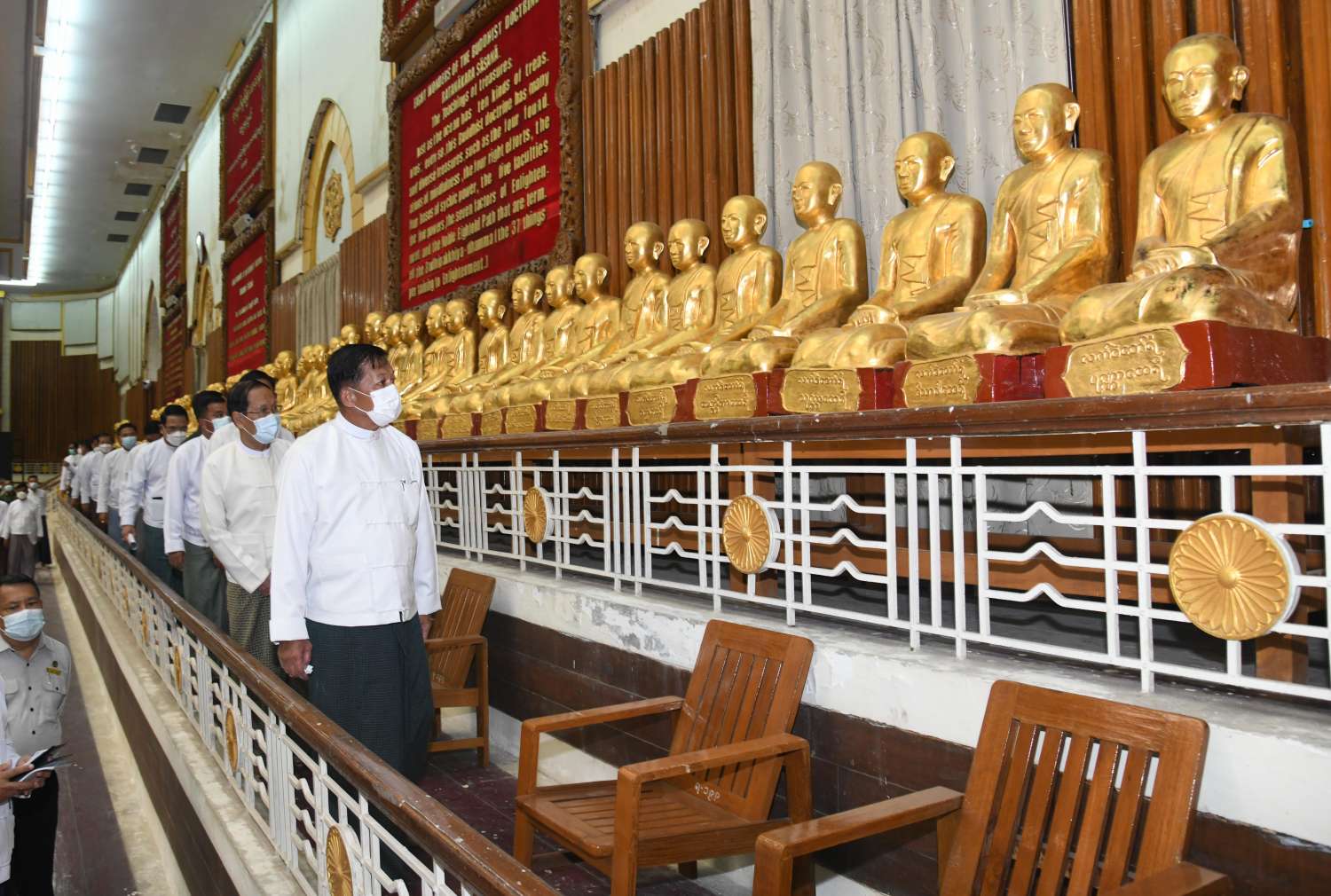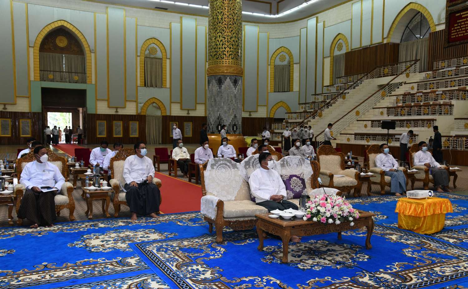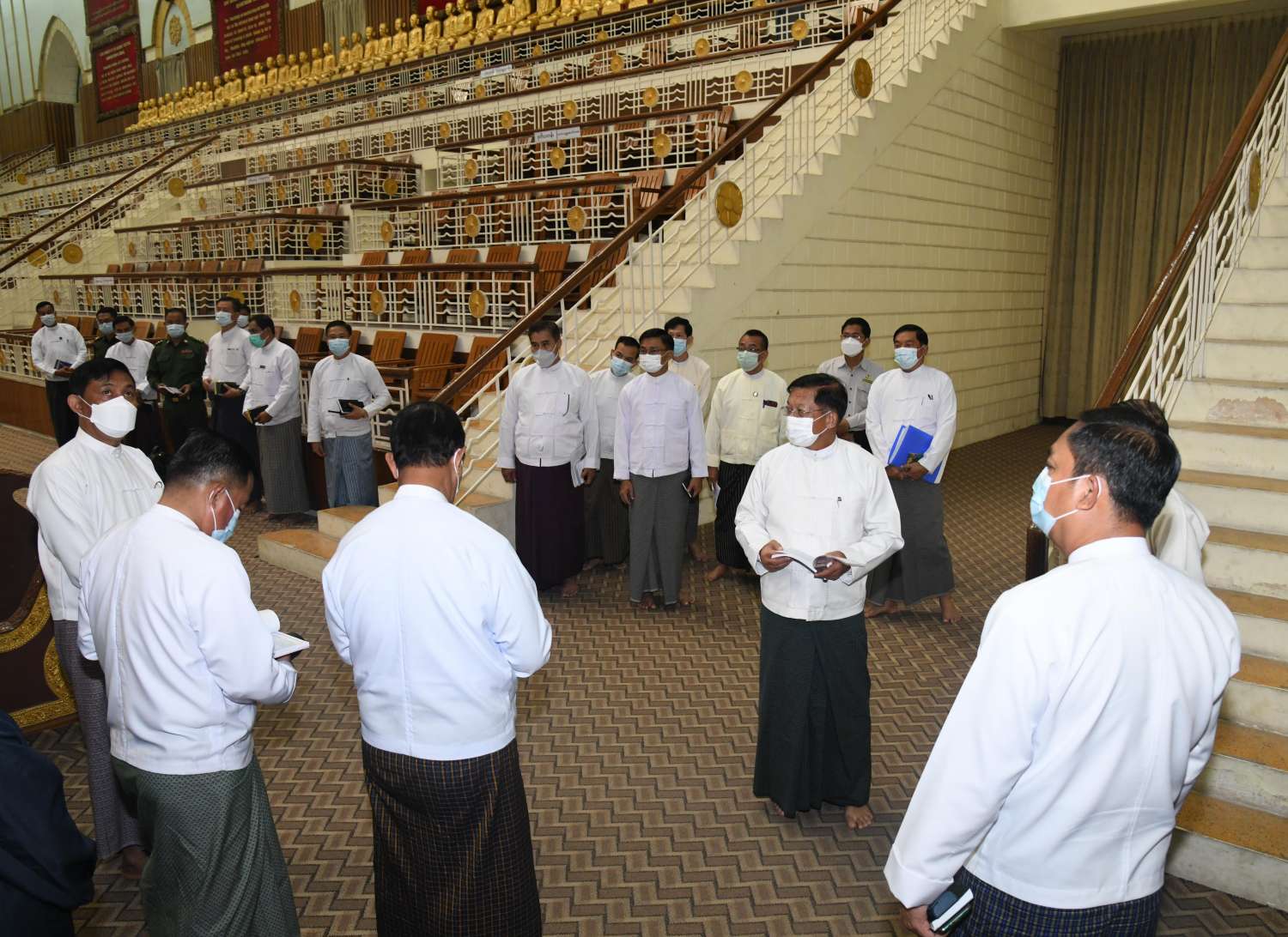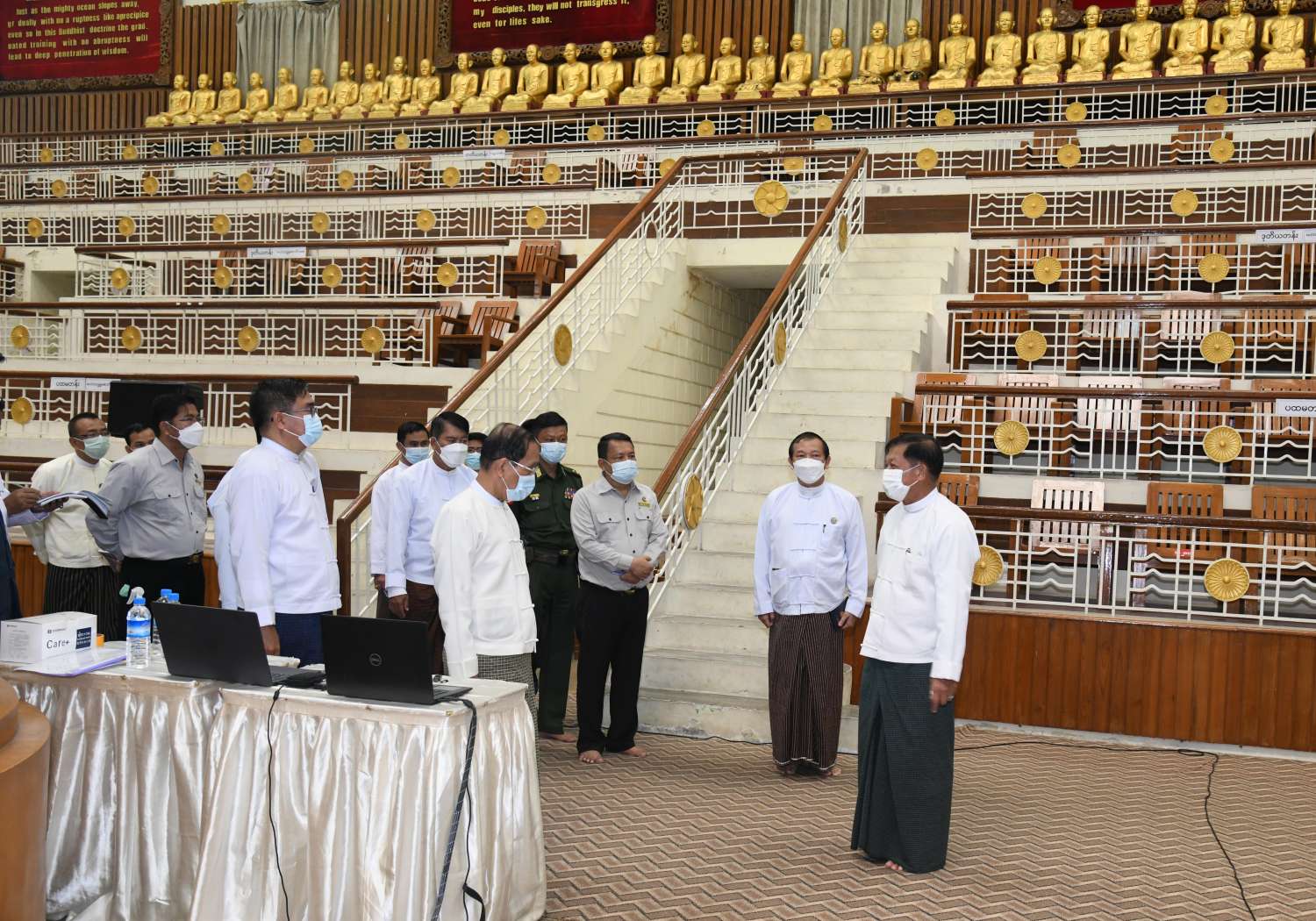 ထို့နောက် နိုင်ငံတော်စီမံအုပ်ချုပ်ရေးကောင်စီဥက္ကဋ္ဌ နိုင်ငံတော်ဝန်ကြီးချုပ် သည် ဟံသာသီရိကုန်းတော်ရှိ နိုင်ငံတော်ဩဝါဒါစရိယ ဆရာတော်ကြီးများနှင့် နိုင်ငံတော် ဗဟိုသံဃာ့ဝန်ဆောင် ဆရာတော်ကြီးများ လာရောက်စဉ် ခေတ္တသီတင်းသုံးသည့် အဆောင်များအတွင်း လှည့်လည်ကြည့်ရှုစစ်ဆေး၍ စနစ်တကျ ပြုပြင်မွန်းမံထိန်းသိမ်းခြင်းများ ဆောင်ရွက်ရန်အတွက် လမ်းညွှန်မှာကြားသည်။