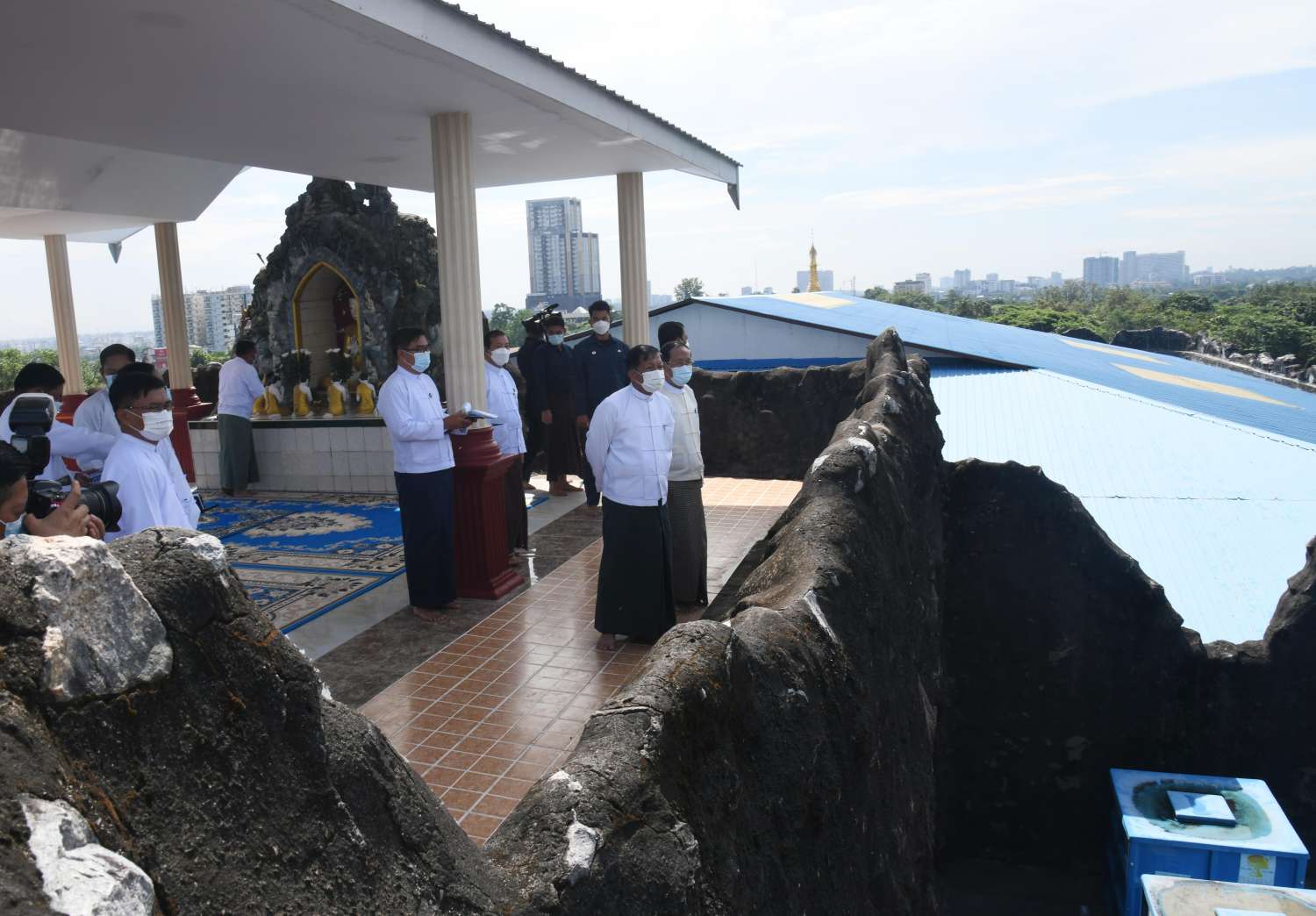 ယင်းနောက် နိုင်ငံတော်စီမံအုပ်ချုပ်ရေးကောင်စီဥက္ကဋ္ဌ နိုင်ငံတော်ဝန်ကြီးချုပ်သည် လိုဏ်ဂူတော်ကြီးရှိ ပျက်စီးယိုယွင်းနေမှု အခြေအနေများအား လှည့်လည်ကြည့်ရှု စစ်ဆေးပြီး တာဝန်ရှိသူများ၏ တင်ပြချက်များအပေါ် လိုအပ်သည်များ လမ်းညွှန်မှာကြား၍ လိုဏ်ဂူတော်ကြီး၏ အပေါ်ဆုံးထပ်ရှိ ဗုဒ္ဓရုပ်ပွားတော်မြတ်အား ဖူးမြော်ကြည်ညိုသည်။