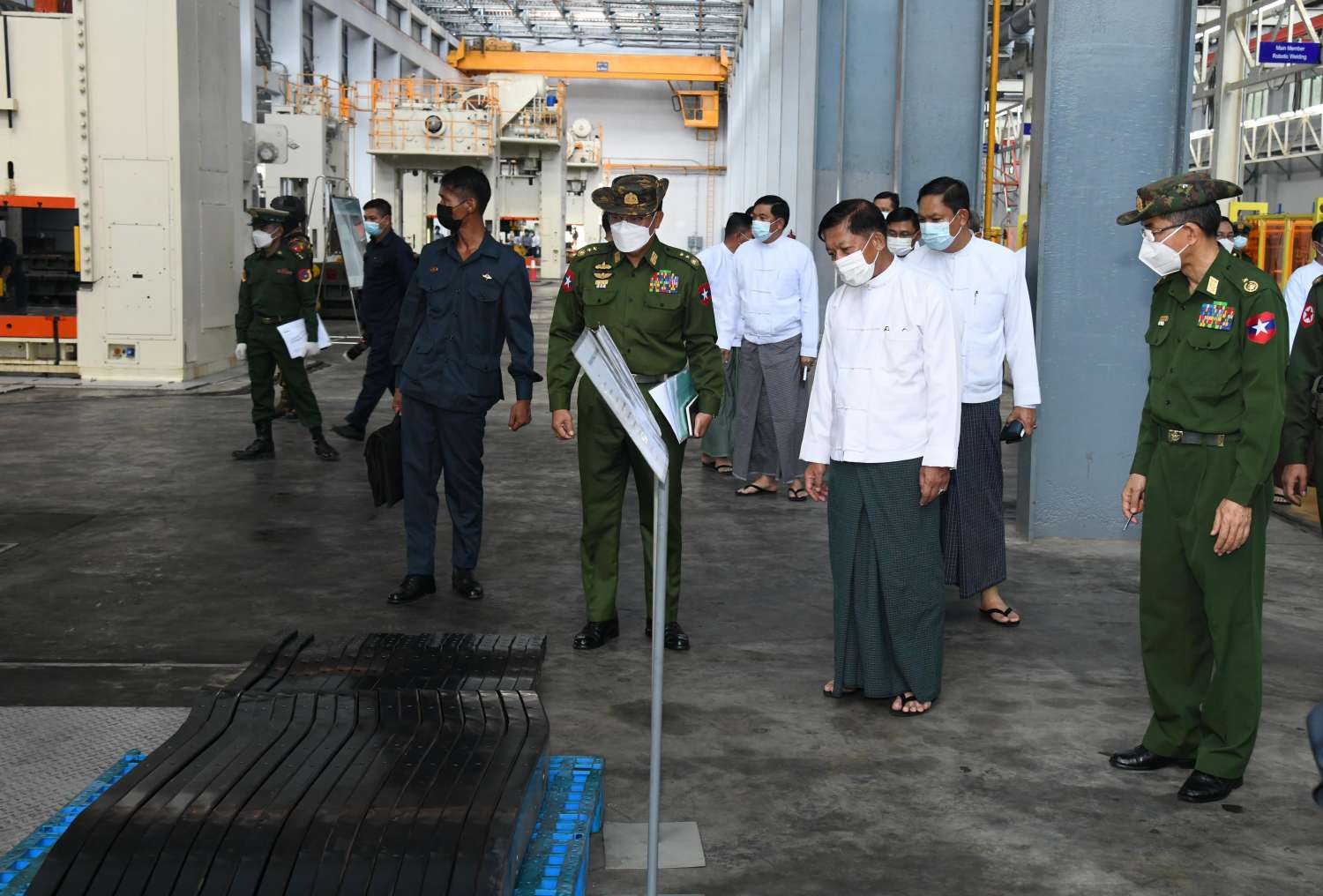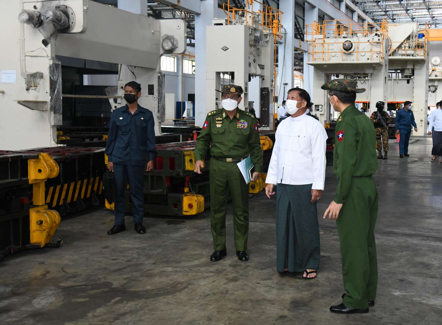 ထို့နောက် နိုင်ငံတော်စီမံအုပ်ချုပ်ရေးကောင်စီဥက္ကဋ္ဌ နိုင်ငံတော်ဝန်ကြီးချုပ်နှင့် အဖွဲ့ဝင်များသည် စက်ရုံအတွင်း မော်တော်ယာဉ်နှင့် ဆက်စပ်ပစ္စည်းများအား ခေတ်မီစက်ကိရိယာများနှင့် နည်းပညာများ အသုံးပြု၍ ထုတ်လုပ်လျက်ရှိသည့် အခြေအနေများကို လှည့်လည်ကြည့်ရှုကြရာ တာဝန်ရှိသူများက လိုက်လံရှင်းလင်း တင်ပြကြပြီး နိုင်ငံတော် စီမံအုပ်ချုပ်ရေးကောင်စီဥက္ကဋ္ဌ နိုင်ငံတော်ဝန်ကြီးချုပ်က စက်ရုံဝန်ထမ်းများအတွက် ချီးမြှင့်ငွေများ ပေးအပ်သည်။