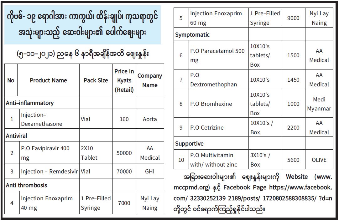နောင်မွန်းမြို့နယ်တွင် ကိုဗစ်-၁၉ ရောဂါ ကာကွယ် ထိန်းချုပ် ကုသရာတွင် အသုံးများသည့် ဆေးဝါးများ၏ ပေါက်စေ◌ျးများ 11/06/2021