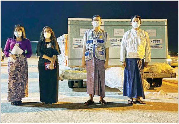 တရုတ်ပြည်သူ့သမ္မတနိုင်ငံမှ ဝယ်ယူထားသည့် Sinopharm အမှတ်တံဆိပ် ကာကွယ်ဆေး စုစုပေါင်း ၂၄ သန်း doses သည် (၆)ကြိမ် ခွဲ၍ ရောက်ရှိခဲ့ပြီးဖြစ်သည်။ ထပ်မံရောက်ရှိလာသည့် ကာကွယ်ဆေးများကို တိုင်းဒေသကြီး/ ပြည်နယ်များသို့ လိုအပ်ချက်အရ မြေပြင်ခရီးလမ်းကြောင်းမှ လည်းကောင်း၊ တပ်မတော်(လေ)နှင့် မြန်မာ့လေကြောင်းတို့၏ အကူအညီဖြင့် လေကြောင်းခရီးမှလည်းကောင်း အအေး လမ်းကြောင်းမပျက် ဆက်လက်ဖြန့်ဝေသွားမည်ဖြစ်သည်။