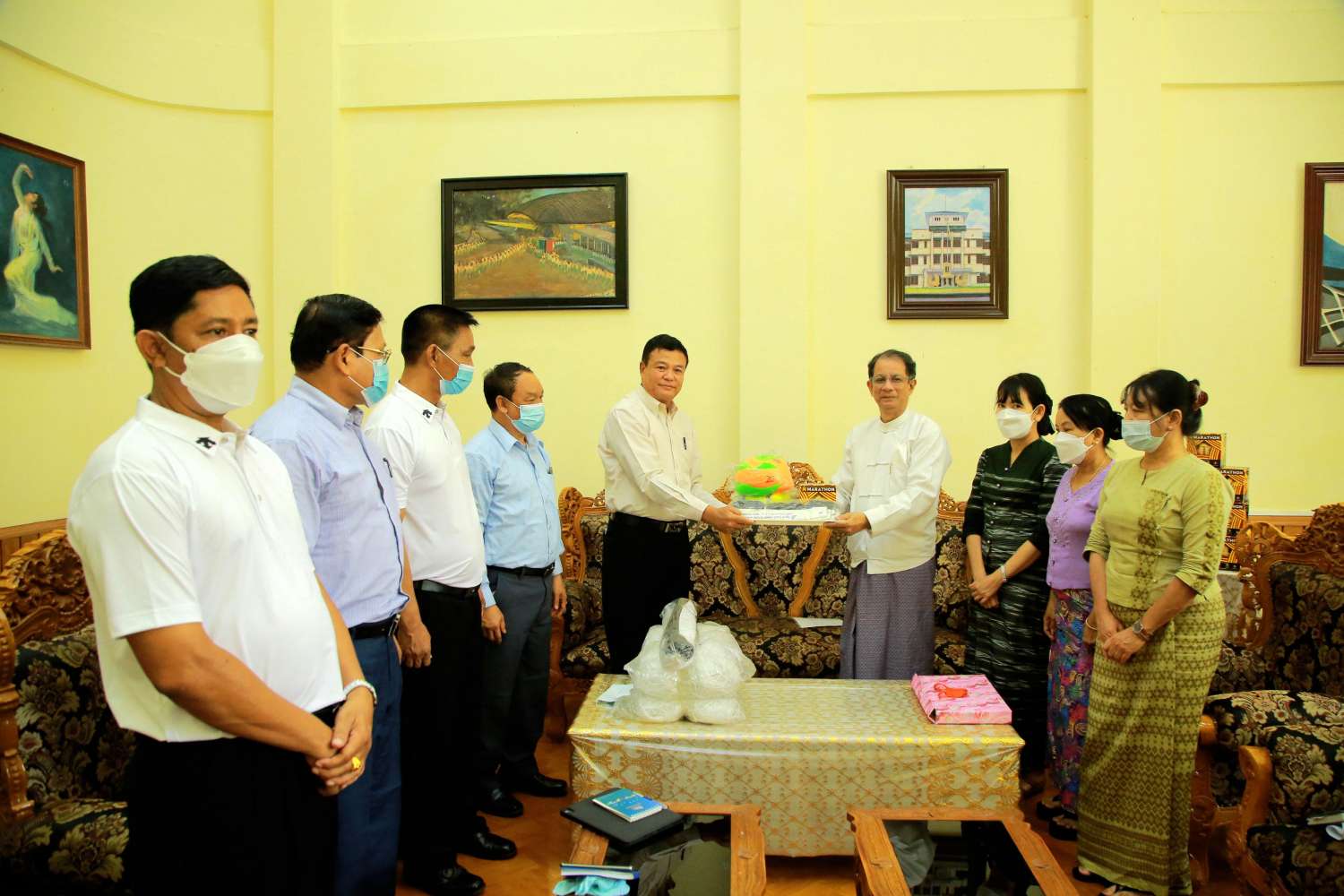 ထို့နောက် ပြည်ထောင်စုဝန်ကြီးနှင့်အဖွဲ့သည် မွန်ပြည်နယ်အစိုးရအဖွဲ့ရုံး၌ မွန်ပြည်နယ်အစိုးရ အဖွဲ့ ဝန်ကြီးချုပ် ဦးဇော်လင်းထွန်း ဦးဆောင်သော ပြည်နယ်အစိုးရအဖွဲ့နှင့် တွေ့ဆုံ၍ မွန်ပြည်နယ် အားကစားကဏ္ဍ ဖွံ့ဖြိုးတိုးတက်ရေး အတွက် ဝန်ကြီးဌာနနှင့် ပူးပေါင်းဆောင်ရွက်ရ မည့် လုပ်ငန်းများကို ဆွေးနွေးညှိနှိုင်းခဲ့ကြသည်။ ဆွေးနွေးပွဲအပြီး ပြည်ထောင်စုဝန်ကြီးက ပြည်နယ်ဝန်ကြီးချုပ်ထံ မွန်ပြည်နယ်အတွက် အားကစားအထောက်အကူပြု ပစ္စည်းများ ပေးအပ် လှူဒါန်းသည်။