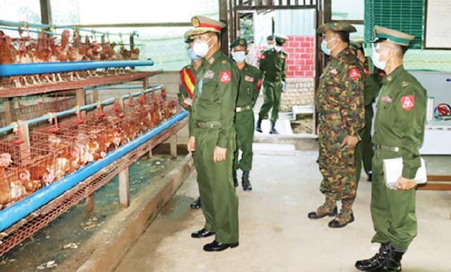 ကိုဗစ်-၁၉ ရောဂါ တတိယလှိုင်းဖြစ်ပွားမှုကြောင့် ရောဂါကာကွယ်၊ ထိန်းချုပ်၊ ကုသရေးလုပ်ငန်းများ ဆောင်ရွက်နေချိန်တွင် ဒေသတွင်းစားနပ်ရိက္ခာဖူလုံရေးနှင့် ပြည်သူများ၏ စားသောက်ရေး ကို အထောက် အကူဖြစ်စေရန်အတွက် တိုင်းစစ်ဌာန ချုပ်နယ်မြေအသီးသီးရှိ အစိုးရ၊ တပ်မတော်နှင့် ပုဂ္ဂလိကပိုင် ဒေသတွင်းစိုက်ပျိုးမွေးမြူ ရေးနှင့် အခြားလူသုံးကုန်လုပ်ငန်းများ ကုန်ထုတ် လုပ်မှုရာ နှုန်းပြည့်ထုတ်လုပ်နိုင်ရေး ဆောင်ရွက်လျက်ရှိရာ တိုင်းဒေသကြီးနှင့် ပြည်နယ်အသီးသီးမှ ဝန်ကြီးချုပ်များ၊ တိုင်းမှူးများနှင့် တာဝန်ရှိသူများက အဆိုပါနေရာများသို့ သွားရောက် ကြည့်ရှုကြပြီး လိုအပ်သည်များ ဖြည့်ဆည်းဆောင်ရွက်ပေးလျက်ရှိသည်။