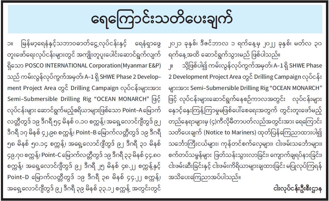 အများပြည်သူသို့ အသိပေးကြေညာချက်