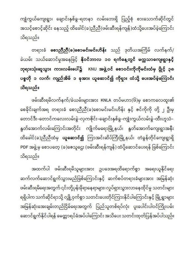 အများပြည်သူသို့ အသိပေးကြေညာချက်