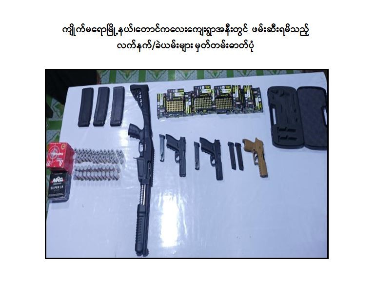 ကျိုက်မရောမြို့နယ်၊ တောင်ကလေးကျေးရွာအနီးတွင် လက်နက်/ခဲယမ်းများ ဖမ်းဆီးရမိ
