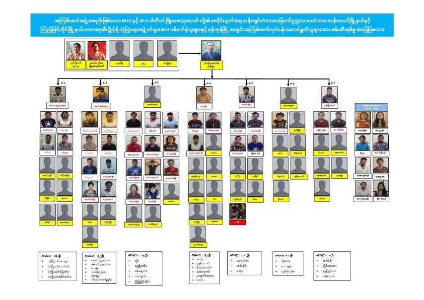 - Area -1 အဖွဲ့မှ တရားခံ ဇင်မင်းထွန်းသည် စက်တင်ဘာလ ၄ ရက်တွင် မြောက်ဥက္ကလာမြို့နယ်၊ ဗိုလ်မှူး ဗထူးတံတားထိပ်ရှိ လုံခြုံရေးအဖွဲ့ဝင် များအား တိုက်ခိုက်ရန်အတွက် ဝင်းကျော်(ခ)စံရှားထံ တင်ပြခဲ့ရာ ၎င်းမှ အသုံးပြုမည့် လက်နက်များအား ဆွေလင်းအောင်ထံမှ ရယူရန်ချိတ်ဆက် ပေးခဲ့ကြောင်း၊ စက်တင်ဘာလ ၁၀ ရက်တွင် ဇင်မင်းထွန်းသည် ဖမ်းဆီးရန် ကျန်တရားခံ ဟိန်းမင်းစိုးနှင့် နှိုင်းထက်အောင်တို့အား ပစ်ခတ်သူများအဖြစ် လည်းကောင်း၊ စည်သူအား ယာဉ်မောင်းအဖြစ် လည်းကောင်း၊ ဖမ်းဆီး ရန်ကျန် တရားခံ အောင်ထွန်း၊ စစ်နိုင်၊ နိုဗယ်ဦး၊ ဒေါင်းမာန်ချီ၊ အောင်လေး၊ အိကေခိုင်၊ မြတ်သူတို့အား စောင့်ကြည်သတင်းပို့ ပြုလုပ်သူများအဖြစ် လည်းကောင်း၊ ဇင်မင်းထွန်းသည် လက်နက် သိမ်းဆည်းရေးအဖြစ် လည်းကောင်း အဖွဲ့ဝင် ၁၁ ဦးဖြင့် မြောက်ဥက္ကလာပမြို့နယ်၊ တံတားပေါ်ရှိ လုံခြုံရေးတပ်ဖွဲ့ဝင် များအား လက်နက်ငယ်ဖြင့် ပစ်ခတ်ခဲ့ကြောင်း။