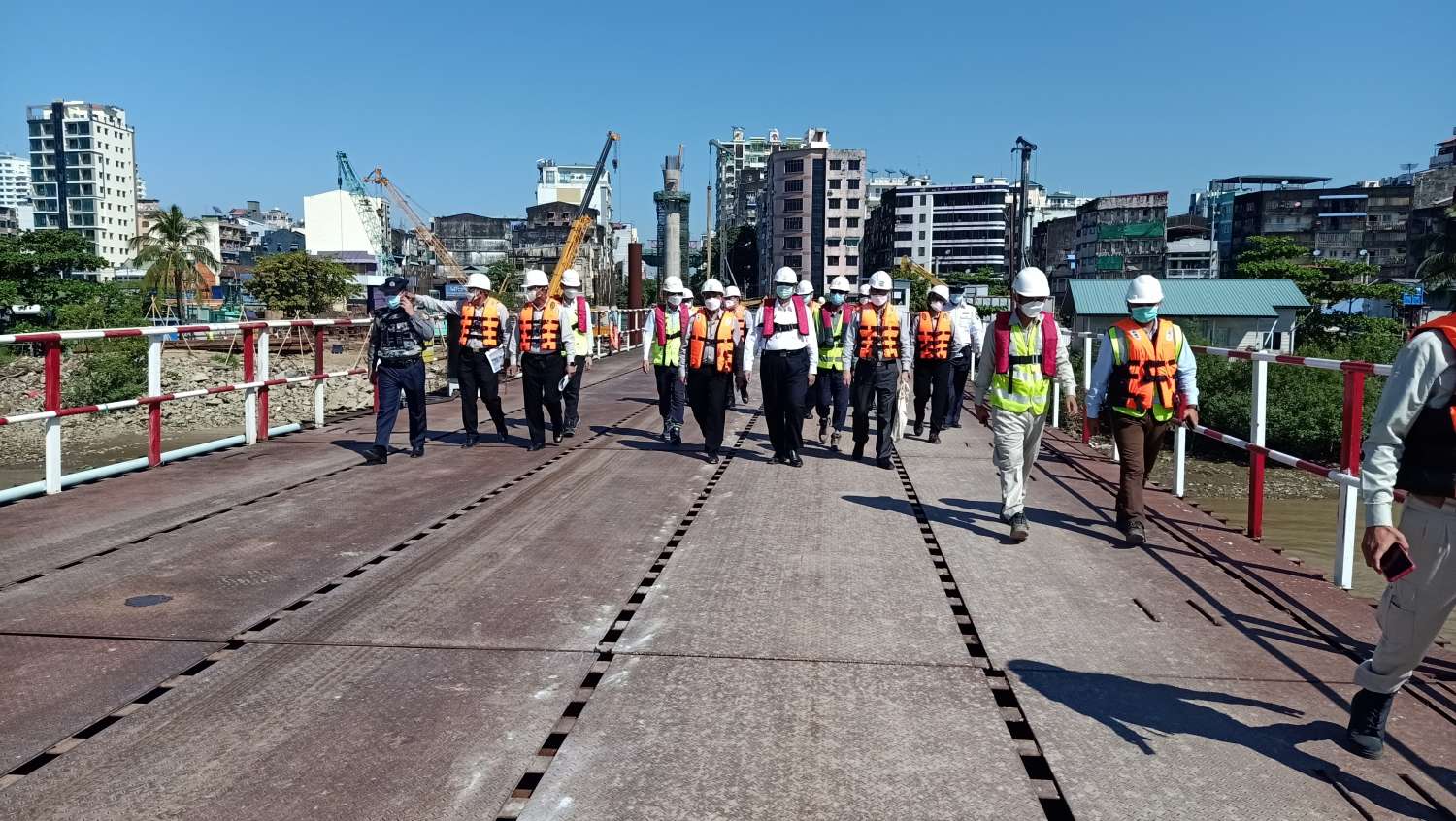 ထို့နောက် ပြည်ထောင်စုဝန်ကြီးနှင့်အဖွဲ့သည် ရန်ကုန်ဘက်ကမ်းချဉ်းကပ်တံတား လုပ်ငန်းများ ဆောင်ရွက်နေမှု၊ ရေလယ်ပင်မတံတားဘိုးပိုင်လုပ်ငန်းများ ဆောင်ရွက်နေမှုနှင့် ဒလဘက်ကမ်း ချဉ်းကပ်တံတားလုပ်ငန်းများ ဆောင်ရွက်နေမှုတို့ကို ကြည့်ရှုစစ်ဆေးသည်။