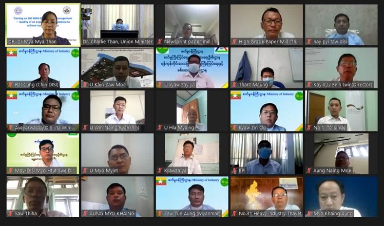 စက်မှုဝန်ကြီးဌာနနှင့် သိပ္ပံနှင့်နည်းပညာဝန်ကြီးဌာနတို့ ပူးပေါင်းကျင်းပသည့် အဖွဲ့အစည်းများ၏ အရည်အသွေးစီမံခန့်ခွဲမှုသင်တန်းကို ယနေ့မွန်းလွဲပိုင်းတွင် virtual စနစ်ဖြင့် ကျင်းပသည်။