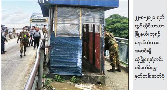 - ဩဂုတ်လ တတိယပတ်တွင် လှိုင်သာယာမြို့နယ်၊ ဘုရင့်နောင်တံတားအဆင်း လုံခြုံရေးရဲကင်းအား ပစ်ခတ်ရန်အတွက် (STF)အဖွဲ့ဝင် ၁ ဦးထံ ပစ္စတို ၂ လက်ထုတ် ပေးခဲ့ရာ ဩဂုတ်လ ၂၂ ရက်တွင် လှိုင်သာယာမြို့နယ်၊ ဘုရင့်နောင်တံတား အဆင်းတွင် လုံခြုံရေးတာဝန်ထမ်းဆောင်နေသော တပ်ဖွဲ့ဝင်များအား ယာဉ်ပေါ်မှ လက်နက်ငယ်ဖြင့် ပစ်ခတ်ခဲ့ရာ လုံခြုံရေး တပ်ဖွဲ့ဝင်အချို့ ထိခိုက်ဒဏ်ရာရရှိခဲ့သည်။