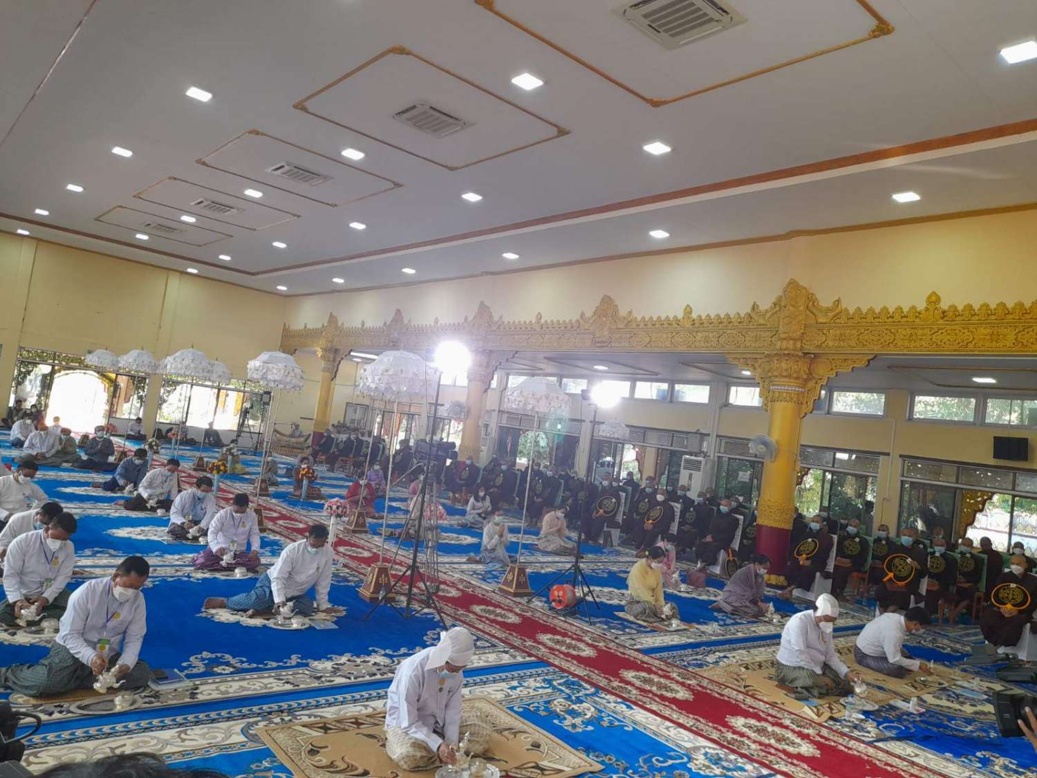 အခမ်းအနားအပြီးတွင် နိုင်ငံတော်သံဃမဟာနာယကဥက္ကဋ္ဌ ဆရာတော်ကြီးအမှူးပြုသော ပင့်သံဃာတော် ၁၈ ပါး၊ ဘွဲ့ခံ ရဟန်းတော် ၁၃၈ ပါး၊ စုစုပေါင်း ၁၅၆ ပါးတို့ကို သာသနာရေးနှင့် ယဉ်ကျေးမှုဝန်ကြီးဌာန ပြည်ထောင်စုဝန်ကြီး၊ မန္တလေးတိုင်း ဒေသကြီးဝန်ကြီးချုပ်နှင့် အလယ်ပိုင်းတိုင်းစစ်ဌာနချုပ်တိုင်းမှူးတို့ အမှူးပြုသော ဌာနဆိုင်ရာအကြီးအကဲများ အလှူရှင် များက ဆွမ်းဆန်တော်များ ဆက်ကပ်လှူဒါန်းသည်။