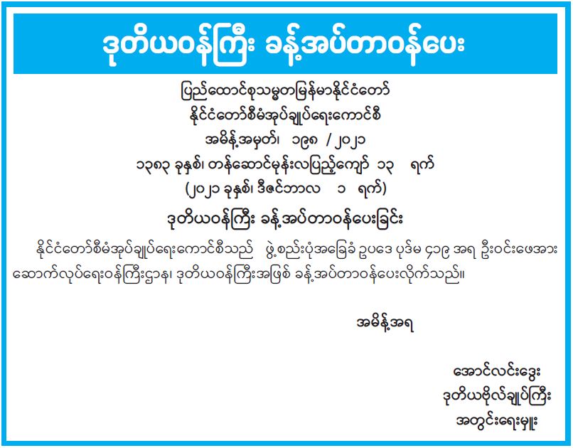 ဒုတိယဝန်ကြီး ခန့်အပ်တာဝန်ပေး