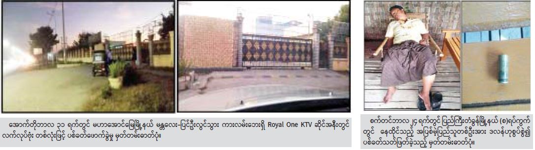 အောက်တိုဘာလ ၃၁ ရက်တွင် YDF အကြမ်းဖက်အဖွဲ့မှ ရှင်းသန့်နိုင်၊ အောင်မျိုးဝင်းနှင့် ဖမ်းဆီးရန်ကျန်တရားခံ ဝဏ္ဏကို တို့ ၃ ဦးသည် မန္တလေး-ပြင်ဦးလွင် ကားလမ်းဘေးရှိ Royal One KTV ဆိုင်အား လက်လုပ်ဗုံးဖြင့် လည်းကောင်း ပစ်ခတ် ဖောက်ခွဲခဲ့ကြောင်း သိရသည်။
