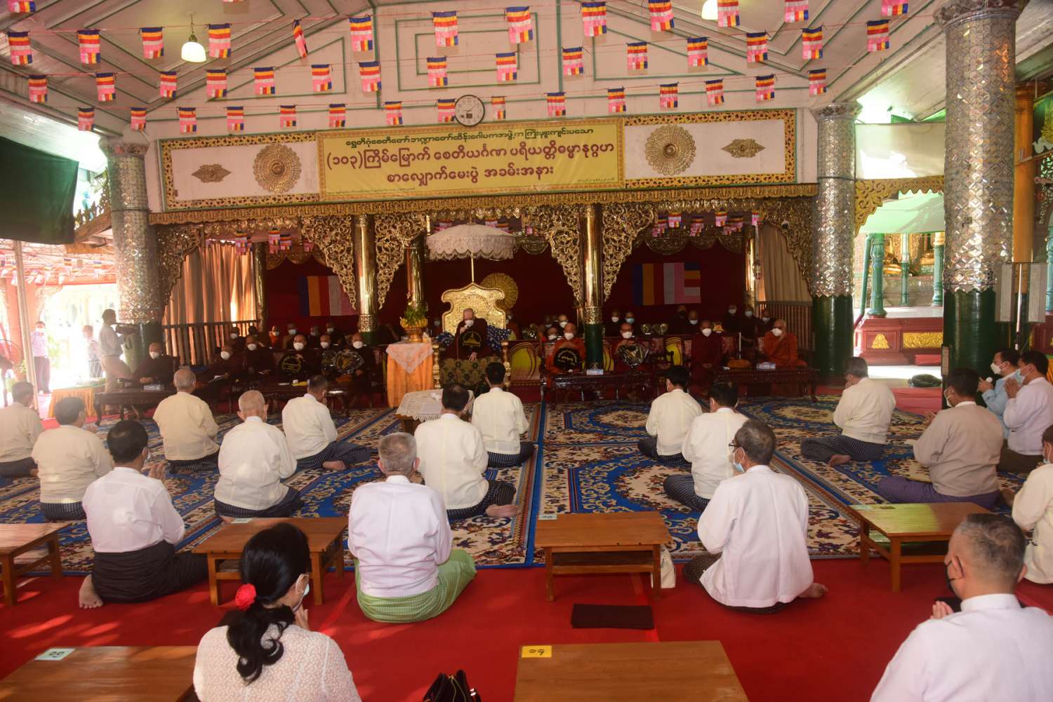 ရွှေတိဂုံစေတီတော် ဘဏ္ဍာတော်ထိန်းဂေါပကအဖွဲ့က ကြီးမှူးကျင်းပသည့် (၁၀၃) ကြိမ်မြောက် စေတိယင်္ဂဏပရိယတ္တိဓမ္မာနုဂ္ဂဟ စာလျှောက်မေးပွဲ ဖွင့်ပွဲအခမ်းအနားကို ယနေ့နံနက်(၉)နာရီတွင် ရွှေတိဂုံစေတီတော်ရင်ပြင်ရှိ ချမ်းသာကြီးတန်ဆောင်း၌ ကျင်းပသည်။