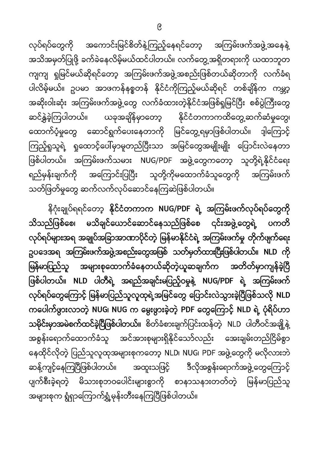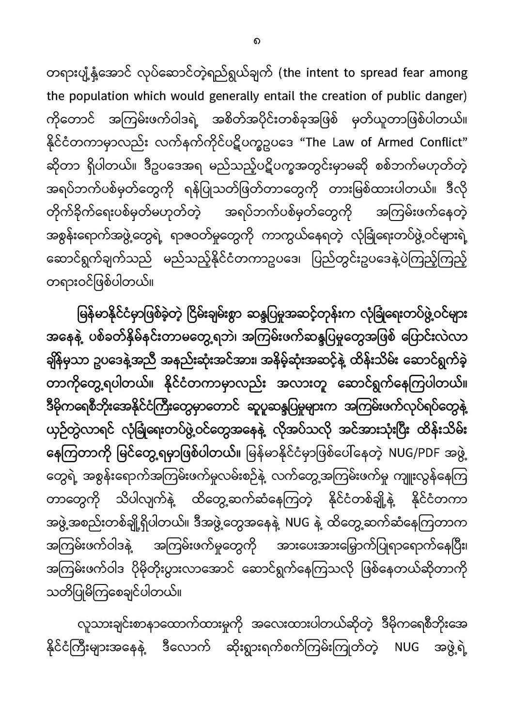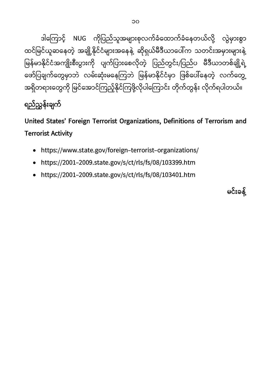 နိုင်ငံတော်အစိုးရ၏ ကြေညာချက်များ