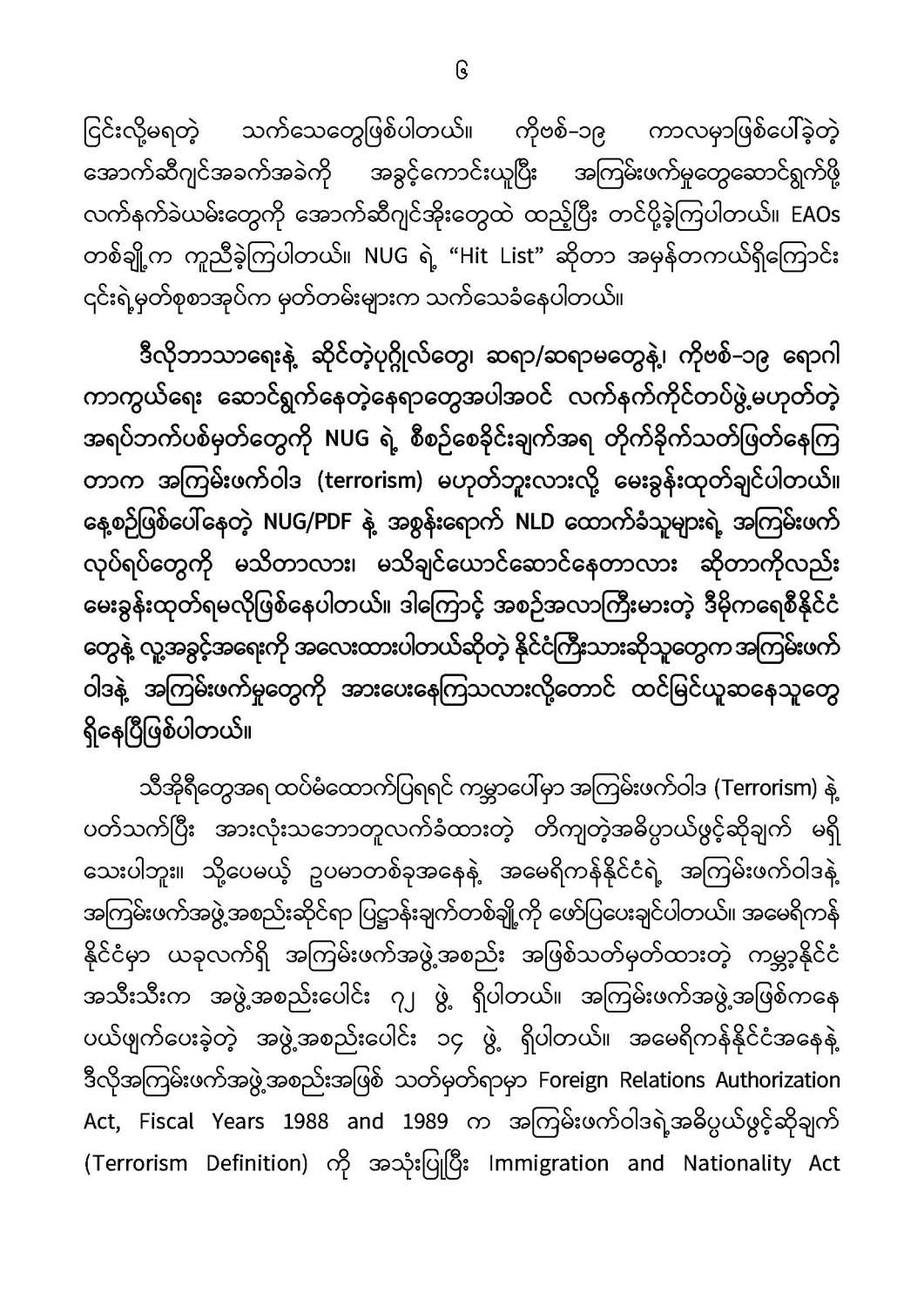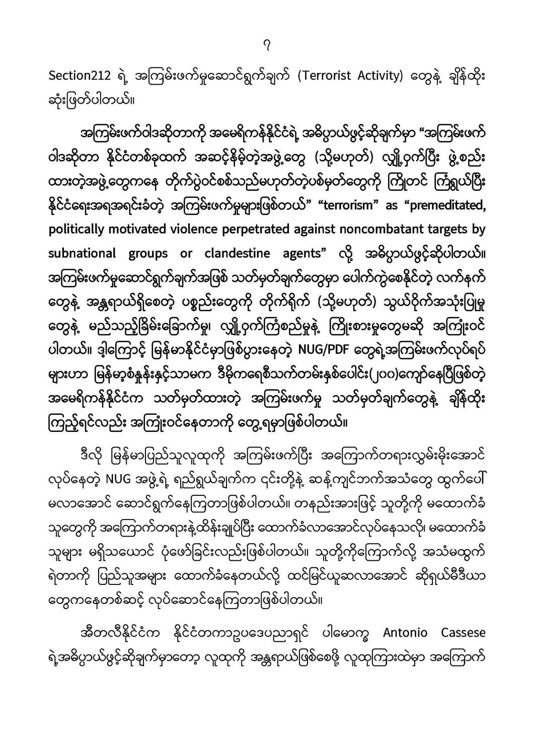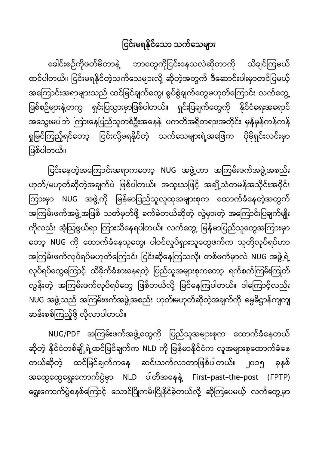 နိုင်ငံတော်အစိုးရ၏ ကြေညာချက်များ