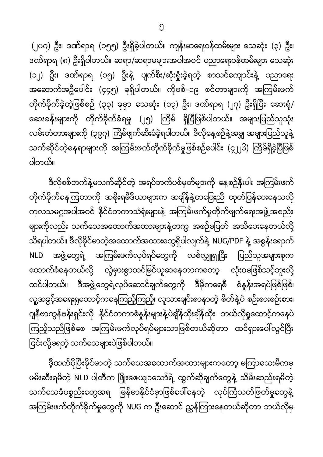 ဦးစီးဌာနနှင့် လုပ်ငန်းများ၏ ကြေညာချက်များ