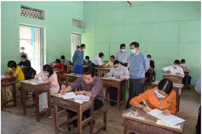 ပြည်ထောင်စုရာထူးဝန်အဖွဲ့၏ ကြော်ငြာစာအမှတ်(၂/၂၀၂၁)၊ (၄/၂၀၂၁)၊ (၇/၂၀၂၁) နှင့် (၈/၂၀၂၁)တို့ပါ ဝန်ကြီးဌာနနှင့်အဖွဲ့အစည်း(၃၄)ခုရှိ ပြန်တမ်းဝင်အရာရှိအဆင့် စတင်ခန့် လစ်လပ် ရာထူး(၈၉၀)နေရာ ရွေးချယ်ပေးရန် ရေးဖြေစာမေးပွဲကို ကိုဗစ်-၁၉ ကာကွယ်ထိန်း ချုပ်ရေးဆိုင်ရာ စည်းကမ်း သတ်မှတ် ချက်နှင့်အညီ နေပြည်တော်၊ ရန်ကုန်မြို့၊ မန္တလေးမြို့၊ မကွေးမြို့နှင့် မော်လမြိုင်မြို့များရှိ စာစစ်ဌာန (၅) ခု၌ ဒီဇင်ဘာ ၁၁ ရက်နှင့် ၁၂ ရက်တို့တွင် တစ်ပြိုင်တည်း ကျင်းပလျက်ရှိသည်။