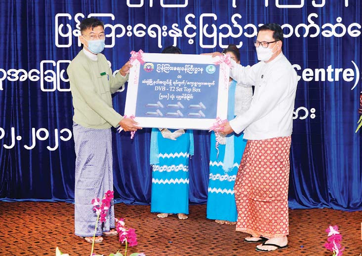 ယင်းနောက် ပြည်ထောင်စုဝန်ကြီး ဦးမောင်မောင်အုန်းက သံတွဲမြို့နယ်အတွင်းရှိ ရပ်ကွက်/ ကျေးရွာများတွင် ဖမ်းယူကြည့်ရှု နိုင်ရန်အတွက် MRTV DVB-T2 Set Top Box အလုံး ၅၀၀ ကို ပေးအပ်လှူဒါန်းရာ သံတွဲခရိုင် ဒုတိယခရိုင်အုပ်ချုပ်ရေးမှူး ဦးမိုးဇော်လင်းက လက်ခံရယူပြီး တိုင်းရင်းသားလူမျိုးများရေးရာ ဝန်ကြီးဌာန ဒုတိယဝန်ကြီး ဦးဇော်အေးမောင်က သံတွဲခရိုင် ပြည်သူ့စာကြည့်တိုက်အတွက် ရခိုင်တိုင်းရင်းသားစာပေနှင့် ယဉ်ကျေးမှုဆိုင်ရာ စာအုပ်စာစောင် များကို ပေးအပ်လှူဒါန်းရာ ပြန်ကြားရေးနှင့် ပြည်သူ့ဆက်ဆံရေးဦးစီးဌာန သံတွဲခရိုင် ဦးစီးမှူး က လက်ခံရယူသည်။