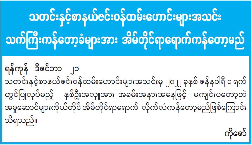 သတင်းနှင့်စာနယ်ဇင်း ဝန်ထမ်းဟောင်းများအသင်း သက်ကြီးကန်တော့ခံများအား အိမ်တိုင်ရာရောက်ကန်တော့မည် 12/22/2021