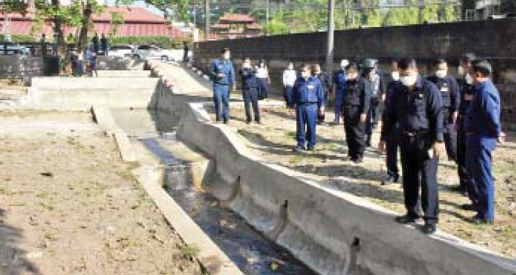 ထို့နောက် မြို့တော်ဝန်နှင့်အဖွဲ့သည် ရန်ကင်း မြို့နယ် (၉) ရပ်ကွက် နှင်းဆီလမ်းရှိ ဆည်မြောင်းချောင်းအတွင်း အမှိုက်နှင့် မြောင်းချေးများ ဆယ်ယူရှင်းလင်းနေမှုနှင့် ဆည်မြောင်းချောင်း၏ ဝဲ/ယာတွင် မြေထိန်းနံရံပြုလုပ်နေမှုတို့ကို ကြည့်ရှုစစ်ဆေးသည်။ ဆက်လက်၍ မြို့တော်ဝန်နှင့်အဖွဲ့သည် တောင်ဥက္ကလာပမြို့နယ် (၁၂)ရပ်ကွက် မာဃလမ်းရှိ ကျိုက္ကဆံချောင်းကူးတံတား(မာဃ)၌ တံတားချဉ်းကပ်လမ်းနှင့် တံတားအောက်ခြေချောင်းစပ်တွင် အမြင်မတင့်တယ်သောမြေကြီးပုံများနှင့် မြက်ချုံများ ရှင်းလင်းရန်၊ ချောင်းအတွင်း အမှိုက်များ၊ နှုန်းများကို ဆယ်ယူရှင်းလင်းရန်၊ မြို့နယ် အရန်မီးသတ်တပ်ဖွဲ့ (တပ်ရင်းရုံး)ရှေ့လမ်းနှင့် တစ်ဆက်တည်း ကွန်ကရစ်ခင်းကျင်းရန်နှင့် တံတားချဉ်းကပ်လမ်း ဝဲ/ယာ သန့်ရှင်းသပ်ရပ်ရေး မြေယာရှုခင်း ဆောင်ရွက်ရန်တို့ကို မှာကြားသည်။