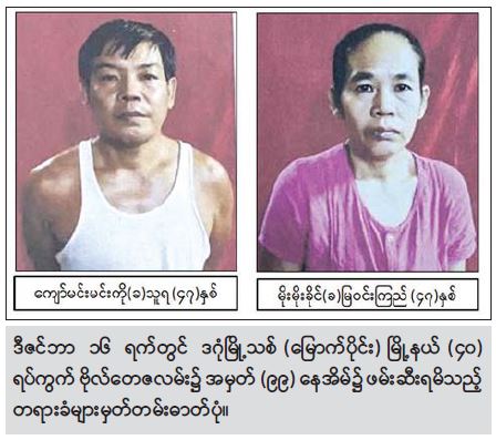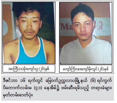 ဆက်လက်၍ လုံခြုံရေးတပ်ဖွဲ့ဝင်များက ပစ်ခတ်တိုက်ခိုက်မှုကျူးလွန်သူများ အသုံးပြုခဲ့သည့် မော်တော်ယာဉ်အား စုံစမ်းခဲ့ရာ အဆိုပါယာဉ်အား ရဲစခန်း ပစ်ခတ် တိုက်ခိုက်သည့်နေ့တွင် မောင်းနှင်အသုံးပြုခဲ့သူများဖြစ်သည့် ဒဂုံမြို့သစ်(မြောက်ပိုင်း)မြို့နယ်၊ (၄၅) ရပ်ကွက်၊ ကြေးတိုင်လမ်း၊ အမှတ်(၂၈)နေ မျိုးမြင့်မြတ်အောင်(ခ) မျိုးကြီး(၂၁)နှစ်နှင့် သင်္ဃန်းကျွန်း မြို့နယ်၊ စံပြရပ်ကွက်၊ စံပြ(၁)လမ်း၊ အမှတ်(၃၇၁)နေ ဝေယံထက် (ခ)နိုင်ကြီး (၂၀) နှစ်တို့ နှစ် ဦးအား ဒီဇင်ဘာလ ၁၆ ရက်နေ့ မွန်းပိုင်းတွင် ဒဂုံမြို့သစ်(မြောက်ပိုင်း) မြို့နယ်၊ အမှတ်(၄၅) ရပ်ကွက်၊ မဟာလမ်းပေါ်၌ ဖြစ်စဉ်ပါယာဉ်နှင့်အတူ ဖမ်းဆီးရမိခဲ့သည်။
