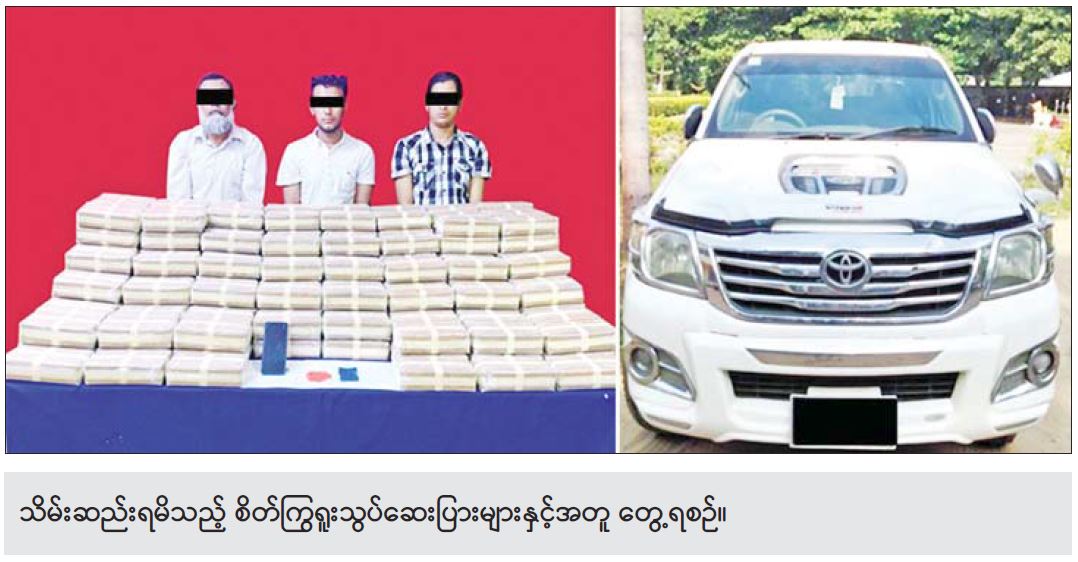 ဖြစ်စဉ်မှာ မူးယစ်ဆေးဝါးတားဆီးနှိမ်နင်းရေး ရဲတပ်ဖွဲ့မှ တပ်ဖွဲ့ဝင်များပါဝင်သော ပူးပေါင်းအဖွဲ့သည် ဒီဇင်ဘာ ၂၂ ရက် မွန်းလွဲ ၂ နာရီတွင် သင်္ဃန်း ကျွန်းမြို့နယ် နနွင်းကုန်းရပ်ကွက် သုမင်္ဂလာလမ်းတွင် မင်းလှစိုး(ခ)အဖွရ်အဒ် မောင်းနှင်ပြီး လှချို(ခ) အဒူရာမန်နှင့် ဝေဇင်(ခ) သော်ဇင်လတ် (ခ)အာလာ ဖတ်တို့လိုက်ပါလာသည့် Vigo မော်တော်ယာဉ်ကို သတင်းအရ ရှာဖွေရာ စိတ်ကြွရူးသွပ်ဆေးပြား နှစ်သိန်း တွေ့ရှိသိမ်းဆည်းရမိခဲ့ပြီး စစ်ဆေးဖော်ထုတ်ချက်အရ ညနေ ၃ နာရီခွဲတွင် ၎င်းတို့ ငှားရမ်းနေထိုင်သည့် သင်္ဃန်းကျွန်းမြို့နယ် ကြီးပွား ရေးရပ်ကွက် ကျန်စစ်သားလမ်း အိမ်အမှတ် (၁၇၀) ကို ဆက်လက်ရှာဖွေရာ စိတ်ကြွရူးသွပ်ဆေးပြား ၂၁ သိန်း ထပ်မံသိမ်းဆည်းရမိခဲ့သဖြင့် စုစုပေါင်းဒေသ ကာလတန်ဖိုးငွေကျပ် ၂ ဒသမ ၃ ဘီလီယံတန်ဖိုးရှိ စိတ်ကြွရူးသွပ်ဆေးပြား ၂၃ သိန်း သိမ်းဆည်းရမိ ခဲ့သဖြင့် ၎င်းတို့ သုံးဦးကို ဥပဒေအရ အရေးယူထား ရှိပြီး ကွင်းဆက်ပြစ်မှု ကျူးလွန်သူများအား ဆက်လက် စစ်ဆေးဖော်ထုတ်လျက်ရှိကြောင်း သိရသည်။