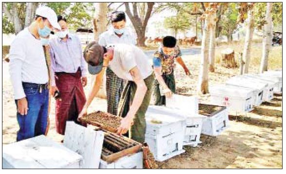 “ကျွန်တော်တို့ တိုင်းဒေသကြီး အတွင်းမှာ ပျားမွေးမြူရေးလုပ် တဲ့ လုပ်ငန်းရှင် ၇၀ကျော်လောက် ရှိပါတယ်။ ပျားအုံပေါင်းက ၁၂၀၀၀ ကျော်ရှိပြီးတော့ စလင်း၊ ပွင့်ဖြူ၊ မကွေး၊ ရေနံချောင်း၊ ချောက်၊ နတ်မောက်နဲ့ မင်းဘူးမြို့နယ်တွေ မှာ မွေးမြူမှုများတယ်။ ကျွန်တော် တို့ဌာနအနေနဲ့ ပျားမွေးမြူရေး လုပ်ငန်းရှင်တွေကို ပျားအုံ ကိုင်တွယ်ထိန်းသိမ်းမှု၊ ဖျားရောဂါ ကာကွယ်ကုသမှု၊ ပျားရည်ထုတ် လုပ်မှုစတဲ့ နည်းပညာ အထောက် အကူပြုသင်တန်းတွေ ဖွင့်လှစ်ပြီး ကူညီ ဆောင်ရွက်ပေးလျက်ရှိပါ တယ်”ဟု မကွေးတိုင်းဒေသကြီး မွေးမြူရေးနှင့် ကုသရေးဦးစီးဌာန ပျားမွေးမြူမှုဖွံ့ဖြိုးရေးဌာနခွဲမှ ဦးစီးအရာရှိဦးကျော်ဌေးက ပြောသည်။