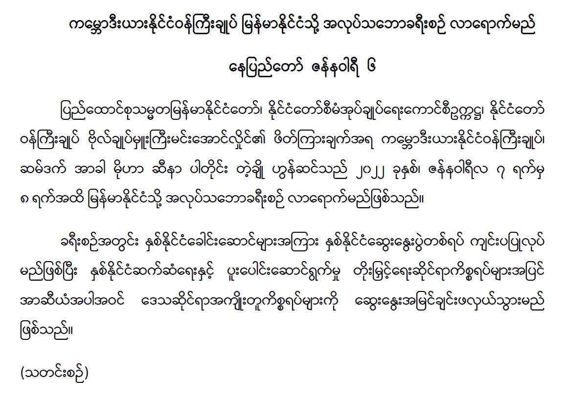 ဝန်ကြီးဌာန ကြေညာချက်များ