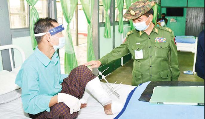 မန္တလေးတိုင်းဒေသကြီး၊ မိတ္ထီလာမြို့ရှိ တပ်မတော်ဆေးရုံ၌ တက်ရောက်ဆေးကုသမှု ခံယူ လျက်ရှိသော အရာရှိ၊ စစ်သည်များကို ယနေ့မွန်းလွဲပိုင်းတွင် အလယ်ပိုင်းတိုင်း စစ်ဌာနချုပ် တိုင်းမှူး ဗိုလ်ချုပ် ကိုကိုဦးနှင့် အဖွဲ့ဝင်များက သွားရောက်ကြည့်ရှု၍ တစ်ဦးချင်း၏ ရောဂါဖြစ်ပွားမှု၊ ဆေးဝါးကုသပေးထားမှုနှင့် ကျန်းမာရေးတိုးတက်ကောင်းမွန်မှု အခြေအနေများကို ရင်းရင်းနှီးနှီး မေးမြန်းအားပေးစကားပြောကြားပြီး စားသောက်ဖွယ်ရာများ ပေးအပ်သည်။