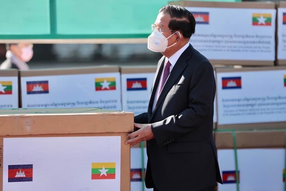 ယင်းနောက် ကမ္ဘောဒီးယားနိုင်ငံမှ လှူဒါန်းသည့် ကိုဗစ် - ၁၉ ရောဂါဆိုင်ရာ ပစ္စည်းများအား ကမ္ဘောဒီးယားဝန်ကြီးချုပ်က လွှဲပြောင်းပေးအပ်ရာ ပြည်ထောင်စုဝန်ကြီး ဦးဝဏ္ဏမောင်လွင် က လက်ခံရယူခဲ့ပြီး မှတ်တမ်းတင်ဓာတ်ပုံရိုက်ကြသည်။
