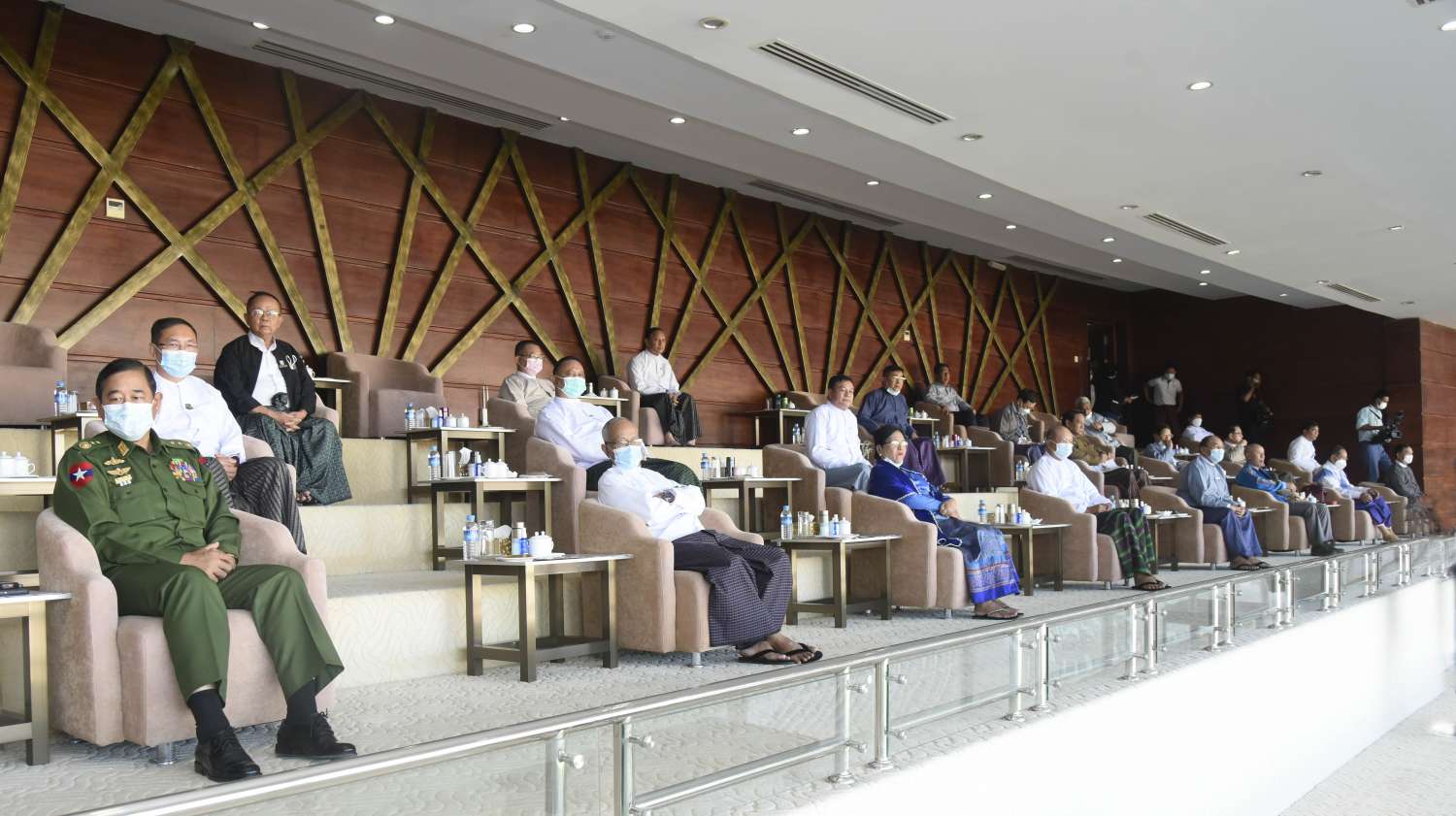 ယင်းနောက် နိုင်ငံတော်စီမံအုပ်ချုပ်ရေးကောင်စီ အဖွဲ့ဝင်များ၊ ပြည်ထောင်စု ရွေးကောက်ပွဲ ကော်မရှင်ဥက္ကဋ္ဌ၊ ပြည်ထောင်စုဝန်ကြီးများ၊ ဒုတိယဝန်ကြီးများနှင့် ဘောလုံးဝါသနာရှင် ပြည်သူများသည် ပထမပွဲစဉ်ဖြစ်သည့် ရန်ကုန်တိုင်းဒေသကြီးအသင်းနှင့် မန္တလေး တိုင်းဒေသကြီးအသင်းတို့ ယှဉ်ပြိုင်ကစားနေမှုကို ကြည့်ရှုအားပေးကြရာ ရန်ကုန်တိုင်း ဒေသကြီးအသင်းက နှစ်ဂိုး ဂိုးမရှိဖြင့် အနိုင်ရရှိသွားကြောင်း သိရသည်။