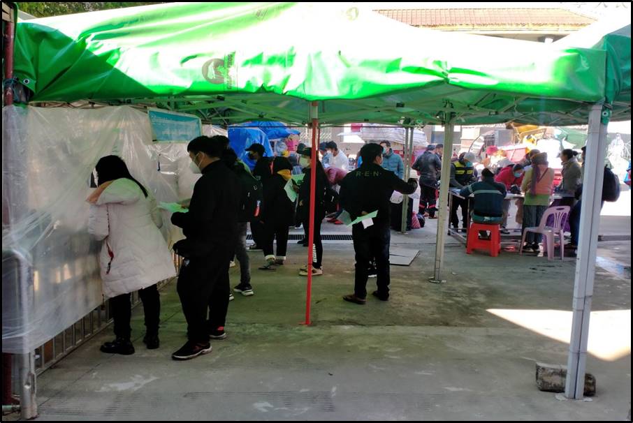 ထိုသို့လက်ခံရာတွင် သက်ဆိုင်ရာပြည်သူ့ဆေးရုံများမှ ကျန်းမာရေးဆိုင်ရာ တာဝန်ရှိသူများ၊ တပ်မတော်ဆေးတပ်ဖွဲ့ဝင်များက ကိုဗစ်-၁၉ ရောဂါစစ်ဆေးပေး ခြင်း၊ Quarantine ဝင်ရောက်ရမည့် အထောက်အထားစာရွက်စာတမ်းများ ပြုလုပ် ပေးခြင်း၊ ကျန်းမာရေးဝန်ကြီးဌာန၏ ညွှန်ကြားချက်များကိုရှင်းလင်းပြောကြားခြင်း တို့ကိုစနစ်တကျဆောင်ရွက်ပေးပြီးတိုင်းစစ် ဌာနချုပ် အသီးသီးမှ တာဝန်ရှိသူများ၊ ဌာနဆိုင်ရာတာဝန်ရှိသူများက လိုအပ်သည်များကူညီဆောင်ရွက် ပေးကြသည်။