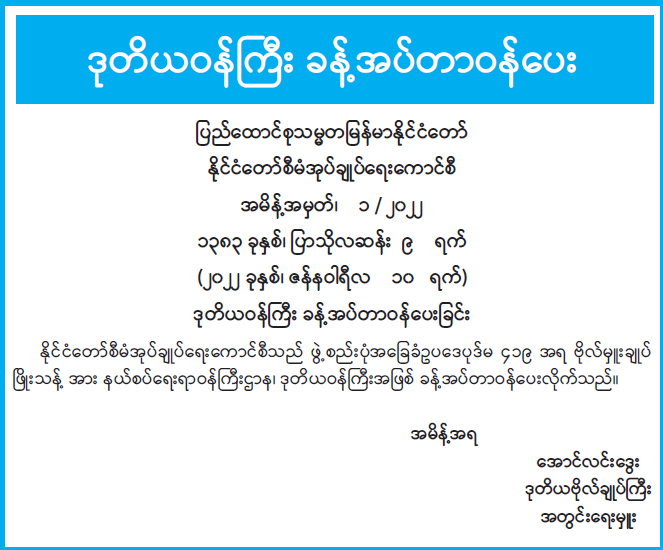 ဒုတိယဝန်ကြီး ခန့်အပ်တာဝန်ပေး