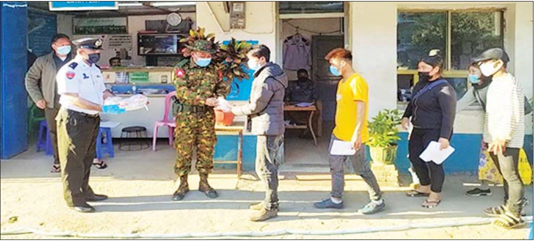 ထိုသို့လက်ခံရာတွင် သက်ဆိုင်ရာ ပြည်သူ့ဆေးရုံများမှ ကျန်းမာရေးဆိုင်ရာ တာဝန်ရှိသူများ၊ တပ်မတော်ဆေး တပ်ဖွဲ့ဝင်များက ကိုဗစ်-၁၉ ရောဂါစစ်ဆေးပေးခြင်း၊ Quarantine ဝင်ရောက်ရမည့် အထောက်အထား စာရွက်စာတမ်းများ ပြုလုပ်ပေးခြင်း၊ ကျန်းမာရေးဝန်ကြီးဌာန၏ ညွှန်ကြားချက် များကို ရှင်းလင်းပြောကြားခြင်းတို့ကို စနစ်တကျဆောင်ရွက်ပေးပြီး တိုင်းစစ်ဌာနချုပ် အသီးသီးမှ တာဝန်ရှိသူများ၊ ဌာနဆိုင်ရာ တာဝန်ရှိသူများက လိုအပ်သည်များ ကူညီဆောင်ရွက်ပေးကြသည်။