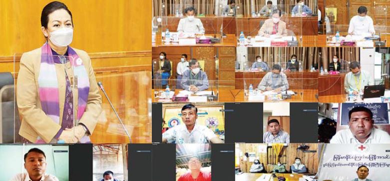 ကိုဗစ်-၁၉ ရောဂါကာကွယ်ဆေး ထိုးနှံရေးအစီအစဉ်နှင့် ထပ်ဆောင်းကာကွယ်ဆေး (Booster dose) ထိုးနှံရေးအစီအစဉ်တွင် စေတနာ့ဝန်ထမ်းများ၊ ပရဟိတအဖွဲ့အစည်းများ ပူးပေါင်းပါဝင်ရေး ညှိနှိုင်းအစည်းအဝေးကို Virtual ဖြင့် ယနေ့နံနက်ပိုင်းတွင် ကျင်းပရာ လူမှုဝန်ထမ်း၊ ကယ်ဆယ်ရေးနှင့် ပြန်လည်နေရာချထားရေး ဝန်ကြီးဌာန ပြည်ထောင်စုဝန်ကြီး ဒေါက်တာသက်သက်ခိုင်၊ အမြဲတမ်းအတွင်းဝန်နှင့် ညွှန်ကြားရေးမှူးချုပ်များ၊ နေပြည်တော်ကောင်စီ၊ တိုင်းဒေသကြီး/ ပြည်နယ်များအတွင်း ကိုဗစ်- ၁၉ ရောဂါ ကာကွယ်ထိန်းချုပ် ကုသရေး အစီအစဉ်များတွင် ပူးပေါင်းပါဝင် ဆောင်ရွက်လျက်ရှိသော စေတနာ့ဝန်ထမ်း၊ ပရဟိတအဖွဲ့အစည်းများမှ ကိုယ်စားလှယ်များ တက်ရောက်ကြသည်။