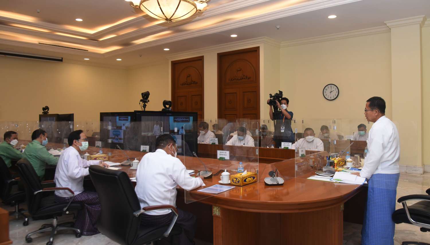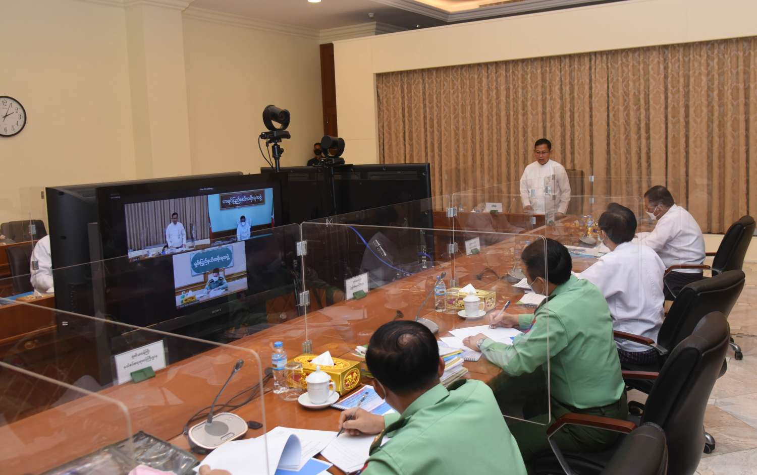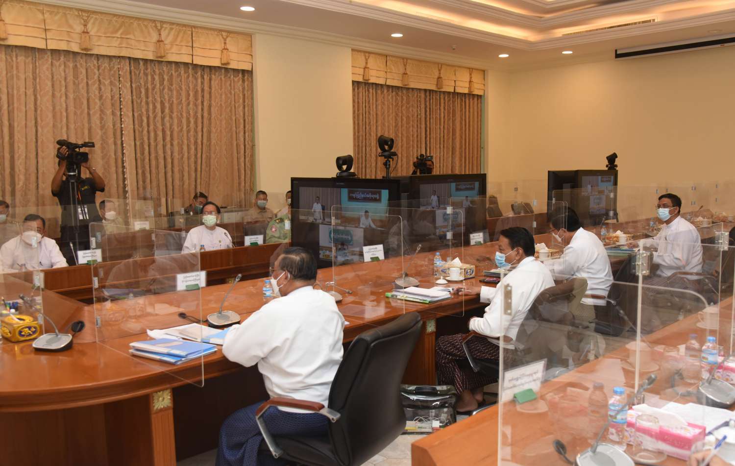 အစည်းအဝေးသို့ နိုင်ငံတော်စီမံအုပ်ချုပ်ရေးကောင်စီဝင် ပြည်ထဲရေးဝန်ကြီးဌာန ပြည်ထောင်စုဝန်ကြီး ဒုတိယဗိုလ်ချုပ်ကြီး စိုးထွဋ်၊ နိုင်ငံခြားရေးဝန်ကြီးဌာန ပြည်ထောင်စုဝန်ကြီး ဦးဝဏ္ဏမောင်လွင်၊ လူဝင်မှုကြီးကြပ်ရေးနှင့်ပြည်သူ့အင်အားဝန်ကြီးဌာန ပြည်ထောင်စုဝန်ကြီး ဦးခင်ရီ၊ စီးပွားရေးနှင့်ကူးသန်းရောင်းဝယ်ရေးဝန်ကြီးဌာန ပြည်ထောင်စုဝန်ကြီး ဒေါက်တာပွင့်ဆန်းနှင့် ကျန်းမာရေးဝန်ကြီးဌာန၊ ပြည်ထောင်စုဝန်ကြီး ဒေါက်တာ သက်ခိုင်ဝင်း၊ ကိုဗစ် - ၁၉ ထိန်းချုပ်ရေးနှင့် အရေးပေါ်တုံ့ပြန်ရေးကော်မတီ အတွင်းရေးမှူး ရုံးအဖွဲ့ခေါင်းဆောင် ပြည်ထဲရေးဝန်ကြီးဌာန ဒုတိယဝန်ကြီး ဗိုလ်ချုပ်စိုးတင့်နိုင်၊ နယ်စပ်ရေးရာဝန်ကြီးဌာန ဒုတိယဝန်ကြီး ဗိုလ်ချုပ် ခွန်သန့်ဇော်ထူး၊ ကုန်စည်ကူးသန်းရေးတွင် ကိုဗစ်-၁၉ ရောဂါ ပြန့်ပွားမှုထိန်းချုပ်ရေး လုပ်ငန်းကော်မတီ ဥက္ကဋ္ဌ၊ စီးပွားရေးနှင့်ကူးသန်း ရောင်းဝယ်ရေးဝန်ကြီးဌာန ဒုတိယဝန်ကြီး ဦးညွန့်အောင် တို့တက်ရောက်ကြပြီး ကချင်ပြည်နယ်ဝန်ကြီးချုပ် ဦးခက်ထိန်နန်နှင့် ရှမ်းပြည်နယ်လုံခြုံရေးနှင့်နယ်စပ်ရေးရာ ဝန်ကြီးတို့က ဗီဒီယိုကွန်ဖရင့်စနစ်ဖြင့် တက်ရောက်ကြသည်။