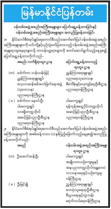 ဝန်ထမ်းအဖွဲ့အစည်းအကြီးအမှူး အတည်ပြုခန့်ထားခြင်းနှင့် ဝန်ထမ်းအဖွဲ့အစည်းအကြီးအမှူးများ အတည်ပြုခန့်ထားခြင်း 01/18/2022