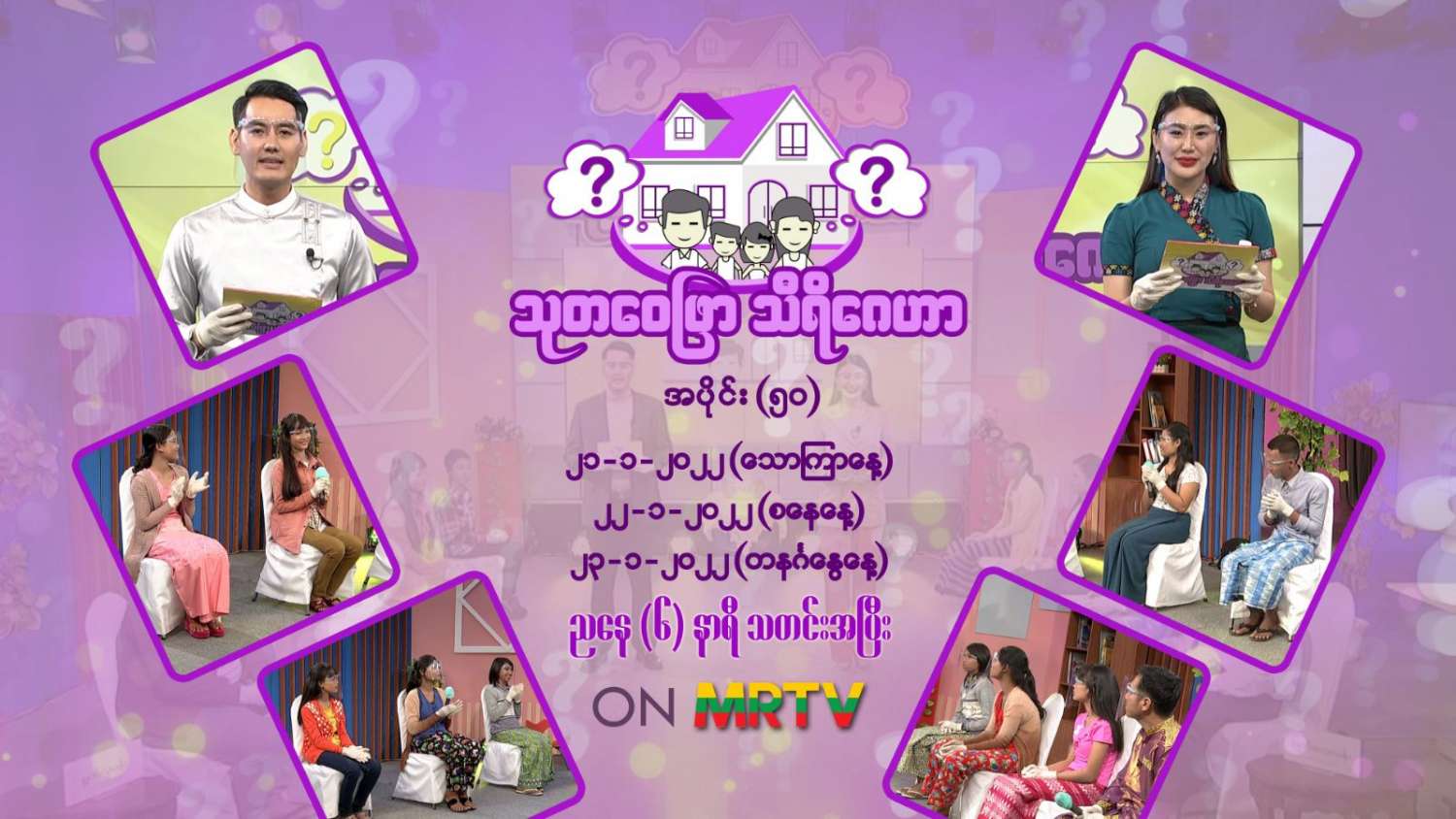 အဆိုပါ ပွဲစဉ်အမှတ် (၅၀)၏ ကိုဗစ်-၁၉ ဆိုင်ရာ အသိပညာပေး အစီအစဉ်ကို သရုပ်ဆောင် စိုးသီဟနှင့် ဂျေနောတို့က တင်ဆက်ကြမည်ဖြစ်ပြီး လူရွှင်တော်အသင်းနှင့် ကိုလူချောတို့အဖွဲ့မှ မိသားစုများက ပါဝင်ယှဉ်ပြိုင်ကြမည်ဖြစ်ရာ ယင်းပြိုင်ပွဲများကို ဇန်နဝါရီ ၂၁၊ ၂၂၊ ၂၃ ရက်များ တွင် မြန်မာ့အသံနှင့် ရုပ်မြင်သံကြား၏ MRTV HD မှ ညနေ(၆)နာရီ သတင်းအပြီးတွင် ထုတ်လွှင့်ပြသသွားမည် ဖြစ်ကြောင်း သိရသည်။