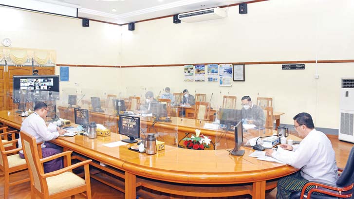 ကုန်စည်ကူးသန်းရေးတွင် ကိုဗစ်-၁၉ ရောဂါ ပြန့်ပွားမှု ထိန်းချုပ်ရေး လုပ်ငန်းဆောင်ရွက်နေမှုများနှင့်ပတ်သက်၍ လုပ်ငန်းညှိနှိုင်းအစည်းအဝေးကို ယနေ့ မွန်းလွဲ ၁ နာရီတွင် စီးပွားရေးနှင့် ကူးသန်းရောင်းရေးဝန်ကြီးဌာန၊ အစည်းအဝေးခန်းမ၌ Virtual စနစ်ဖြင့် ကျင်းပသည်။
