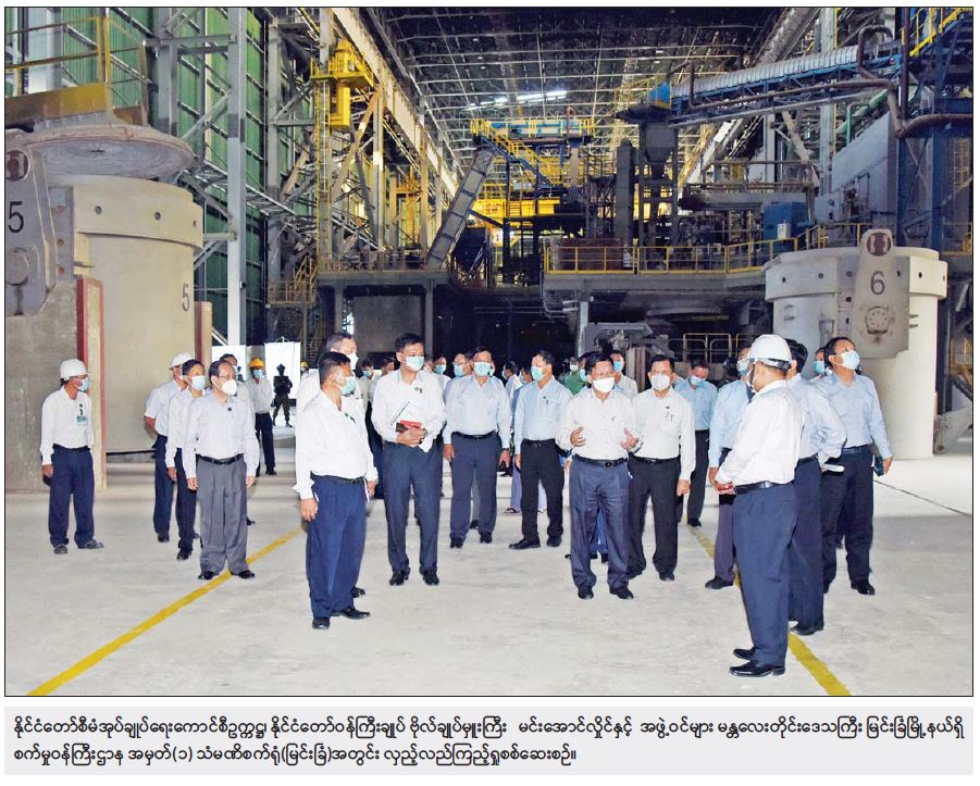 အရေးကြီးလိုအပ်ချက်ပင်ဖြစ် ရှင်းလင်းတင်ပြမှုများအပေါ် နိုင်ငံတော်စီမံအုပ်ချုပ်ရေး ကောင်စီဥက္ကဋ္ဌ၊ နိုင်ငံတော်ဝန်ကြီးချုပ်က မိမိတို့အနေဖြင့် ပြည်တွင်းတွင် အသုံးအများဆုံး ဖြစ်သည့် Deformed Bar (သံချောင်းလုံး)များကို အဓိကလိုအပ်ကြောင်း၊ မိမိတို့နိုင်ငံတွင် ပြည်တွင်းသံမဏိ လိုအပ်ချက်များစွာ ရှိသဖြင့်သံမဏိထုတ်လုပ် ရေးစီမံကိန်းများကို သတ်မှတ်ချိန်အတွင်း ပြီးမြောက်စေရေး ကြိုးပမ်းဆောင်ရွက် ကြရန်လိုကြောင်း၊ ငွေကြေးသုံးစွဲမှုနှင့် ပတ်သက်၍လည်း စနစ်တကျဖြင့် စိစစ်သုံးစွဲရန်လိုကြောင်း၊ စက်ရုံများတွင် အသုံးပြု သည့်ပစ္စည်းများ ရာသီဥတုကြောင့် ပျက်စီးမှုမဖြစ်စေရေး စနစ်တကျ ထိန်းသိမ်းဆောင်ရွက်ရန်လိုကြောင်း၊ သံမဏိစက်ရုံ(မြင်းခြံ)အနေဖြင့် တည်ဆောက်နေဆဲ ကာလအတွင်း စက်ပစ္စည်းများ ၉၉ ဒသမ ၃၄ ရာခိုင်နှုန်းနှင့် ၉၅ ဒသမ ၀၂ ရာခိုင်နှုန်း ရောက်ရှိပြီး ဖြစ်သော်လည်း ဆက်လက်တည်ဆောက်မှု မပြုလုပ်နိုင်ရန်အတွက် ၂၀၁၇ ခုနှစ်၌ လွှတ်တော်တွင် မဲခွဲ ဆုံးဖြတ်ခဲ့ကြောင်း၊ ထိုသို့ဆောင်ရွက်ခဲ့မှုကြောင့် မိမိတို့နိုင်ငံအတွက် ဘဏ္ဍာငွေ များစွာ ထိခိုက်ဆုံးရှုံးခဲ့ရကြောင်း၊ ယနေ့ချေးငွေများအတွက် အရင်း၊ အတိုး ပေးဆပ်နေရကြောင်း၊ ရောက်ရှိပြီးဖြစ်သည့် စက်ရုံပစ္စည်း၊ စက်ပစ္စည်းများမှာ ပြင်ပတွင်ထားသိုရသဖြင့် ပျက်စီး ဆုံးရှုံးမှုများ ဖြစ်ခဲ့ရာ ဝန်ကြီးဌာနအနေဖြင့် အကောင်းဆုံး ပြန်လည်ထိန်းသိမ်းသွားရန်နှင့် မူလလည်ပတ်ပြီး ပြန်လည်ရပ်ဆိုင်းခဲ့ရသည့် သံမဏိစက်ရုံ အမှတ်(၁)အား အမြန်ပြန်လည်ပတ် နိုင်ရန်လိုကြောင်း၊ သံမဏိထုတ်လုပ်မှု လုပ်ငန်းသည် မိမိတို့နိုင်ငံအတွက် အရေးကြီး လိုအပ်ချက်ပင်ဖြစ်ကြောင်း၊ စက်ရုံစီမံကိန်းများအား စနစ်တကျဖြင့် အပိုင်းလိုက် တည်ဆောက်၍ မှန်မှန်ကန်ကန်ဖြင့် မြန်မြန်ဆန်ဆန်ပြီးစီးစေရေး စနစ်တကျ ကြပ်မတ် ဆောင်ရွက်သွားရန်လိုကြောင်း၊ နိုင်ငံတော်တွင် အိမ်ဆောက်လုပ်ရေး သံမဏိပစ္စည်းများမှာများစွာ လိုအပ်သဖြင့် နိုင်ငံတော်အစိုးရအနေဖြင့်သာ မဟုတ်ဘဲ ပုဂ္ဂလိကလုပ်ငန်းရှင်များမှ ဆောင်ရွက်လိုပါကလည်း စည်းကမ်းများနှင့်အညီခွင့်ပြု၍ ပြည်တွင်း သံမဏိထုတ်လုပ်မှု လုပ်ငန်းကို အားပေးမြှင့်တင်ပေး ရန်လိုကြောင်း၊ မြင်းခြံသံမဏိစက်ရုံအတွက် လိုအပ်သည့် လျှပ်စစ်ဓာတ်အား လုံလောက်စွာ ရရှိရေးနှင့်ကုန်ကြမ်း၊ ကုန်ချောများသယ်ယူပို့ဆောင်မှု အဆင်ပြေချောမွေ့စေရေးတို့ကိုလည်း ထည့်သွင်းစဉ်းစား ဆောင်ရွက်ရန်လိုကြောင်း။