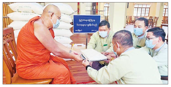 ကိုဗစ်-၁၉ ရောဂါ ကြိုတင်ကာကွယ်ရေးလုပ်ငန်းများ ဆောင်ရွက်နေသည့် ကာလအတွင်း ဆွမ်းကိစ္စရပ်များ အဆင်ပြေစေရန်ရည်ရွယ်၍ ပြည်ထဲရေးဝန်ကြီးဌာန တပ်ဖွဲ့ဝင်ဝန်ထမ်း အရာထမ်း၊ အမှုထမ်းမိသားစုများက မြို့နယ်အသီးသီးရှိ ဘုန်းတော်ကြီးကျောင်းများသို့ ဆွမ်းဆန်တော်များ ဆက်ကပ်လှူဒါန်းခြင်းကို ဆောင်ရွက်လျက်ရှိသည်။