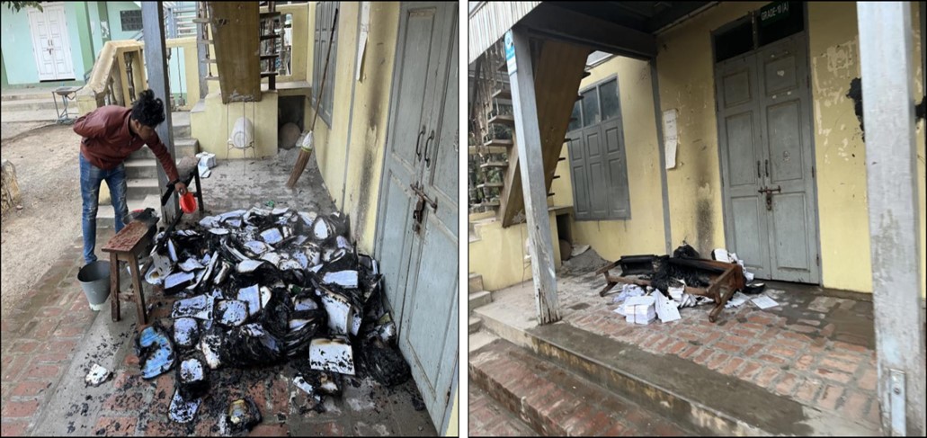 မန္တလေးတိုင်းဒေသကြီး၊ ပုသိမ်ကြီးမြို့နယ်၊ လက်ကောင်းကျေးရွာရှိ ကျောင်းသား၊ ကျောင်းသူများ အေးချမ်းစွာပညာသင်ကြားနေမှုအား မလိုလားသူ အကြမ်းဖက်သမားများက အခြေခံ ပညာအထက်တန်း ကျောင်းခွဲမှ သင်ရိုးညွှန်တမ်းစာအုပ်များအား မီးရှို့ဖျက်ဆီးခဲ့ကြောင်း သိရသည်။