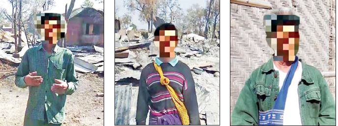 ယင်းဖြစ်စဉ်နှင့် ပတ်သက်၍ PDF အမည်ခံ အကြမ်းဖက်အဖွဲ့များက မိသားစုဝင်များကို အမျိုးမျိုး ခြိမ်းခြောက်၍ မိသားစုဝင် ထဲမှ သက်ကြီးရွယ်အို အဘိုးအိုအား မီးလောင်နေသည့် အထဲသို့ ပစ်ထည့်ပြီး သတ်ဖြတ်သွားခဲ့သည့်အပြင် နေအိမ်ကိုပါ မီးရှို့ဖျက်ဆီးခဲ့သည့်အတွက် အိုးအိမ်နှင့် စည်းစိမ်ကိုပါမက မိသားစုဝင်၏အသက်ကိုပါ ပေးခဲ့ရသည့် ဒေသခံ ကျေးရွာသား တစ်ဦး၏ ရင်နင့်ဖွယ်စကားသံများကိုလည်း ယခုကဲ့သို့ ကြားသိရပါသည်။